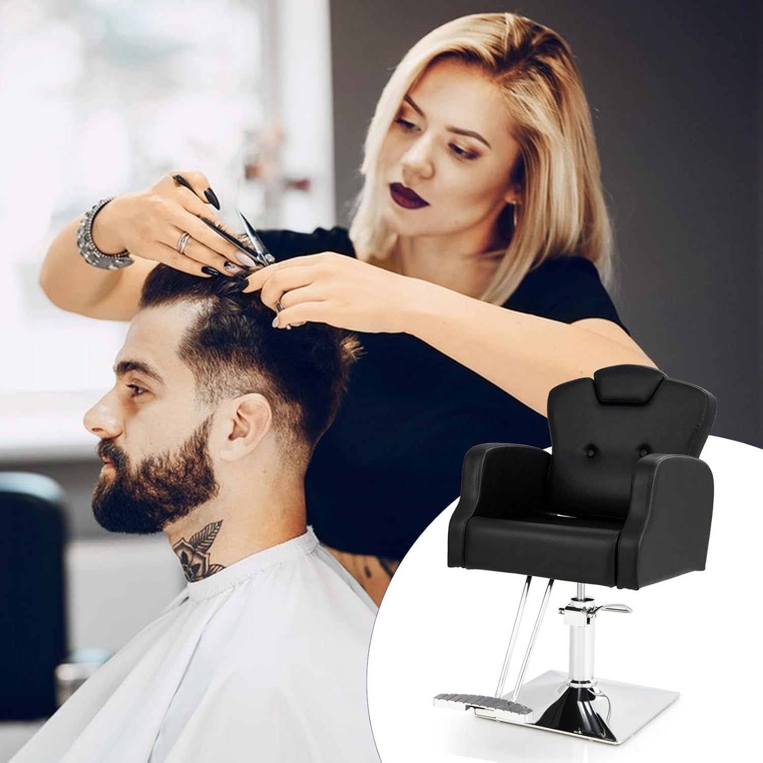 - Application polyvalente : Facile à installer, la polyvalence de notre fauteuil de salon lui permet de convenir à une grande variété d'utilisations, y compris les salons de coiffure, les salons de beauté, les salles de maquillage et même les studios de tatouage. Améliorez l'expérience de votre salon grâce à notre fauteuil de salon facile à utiliser et polyvalent.