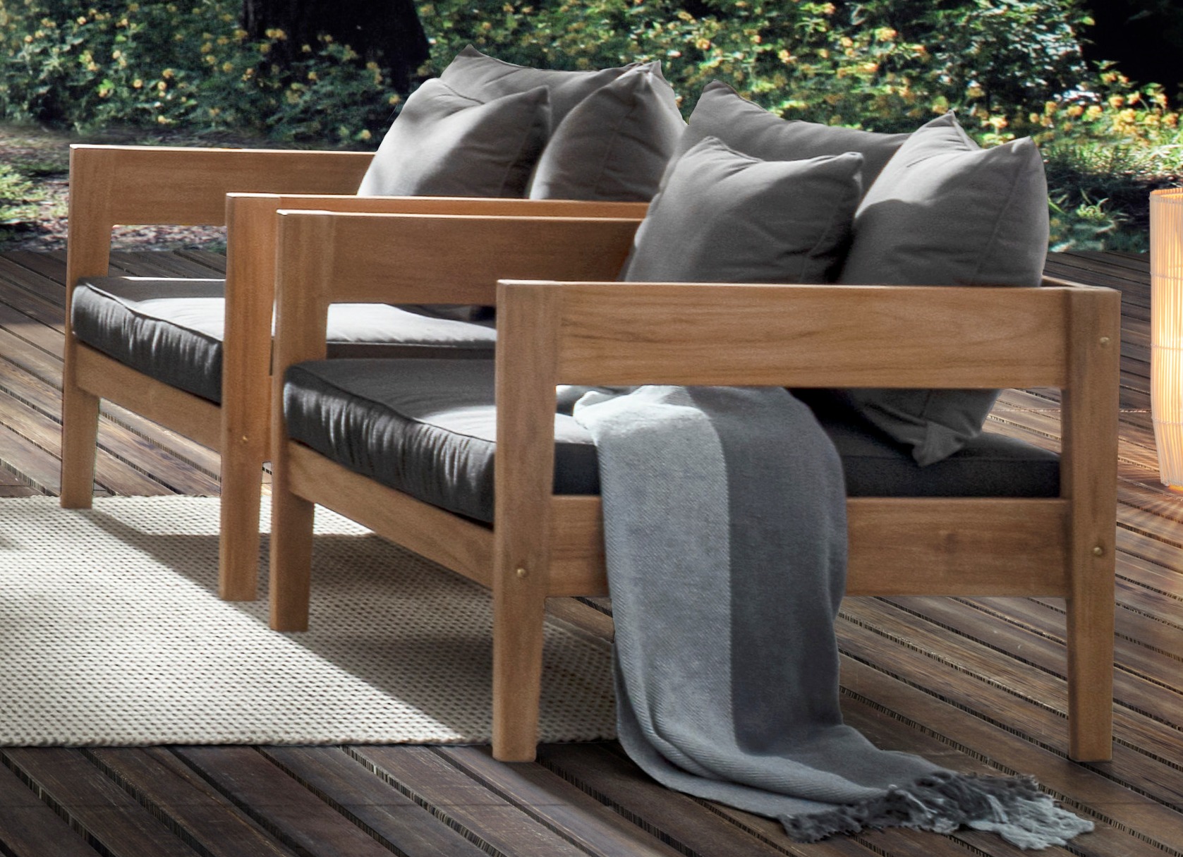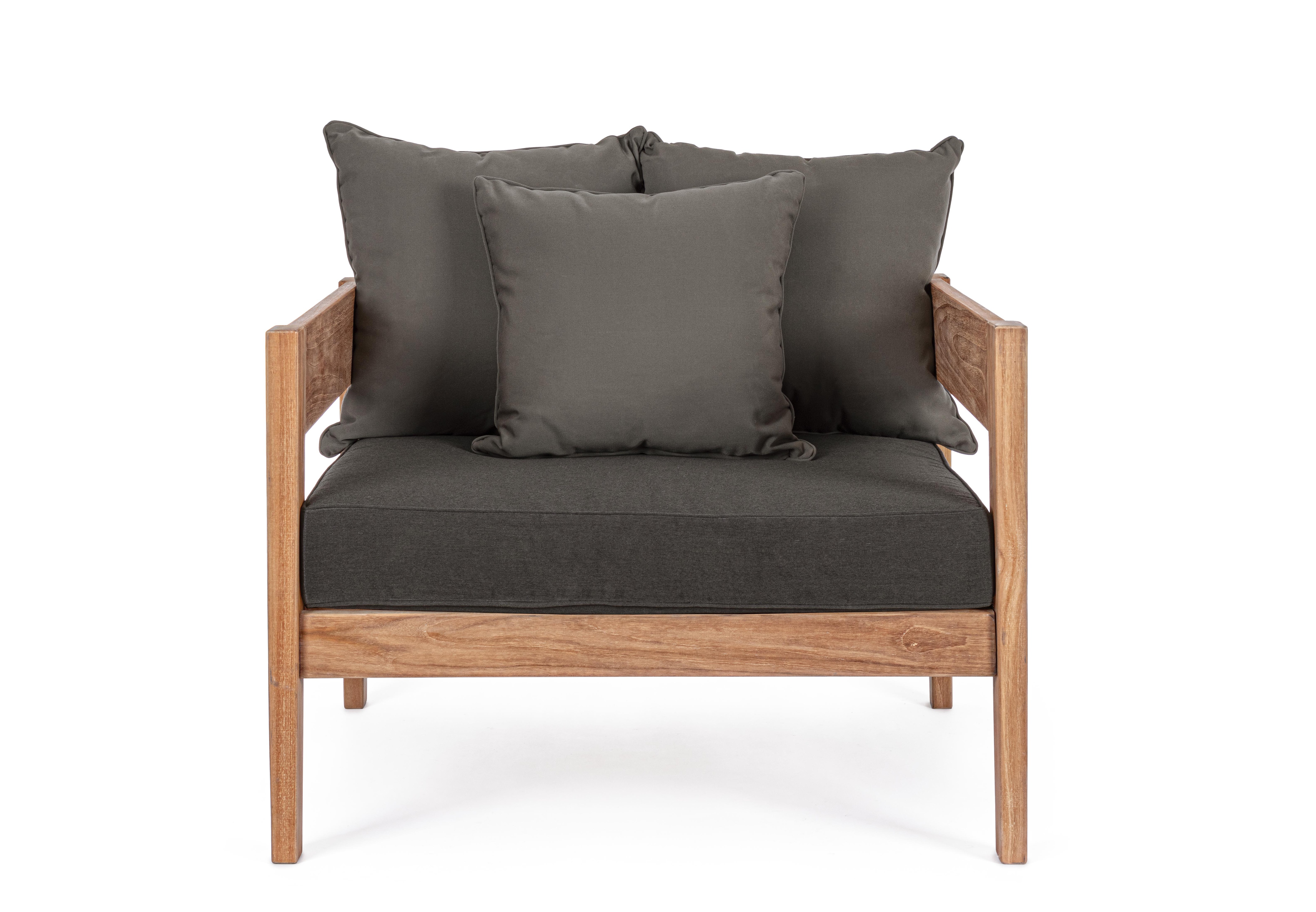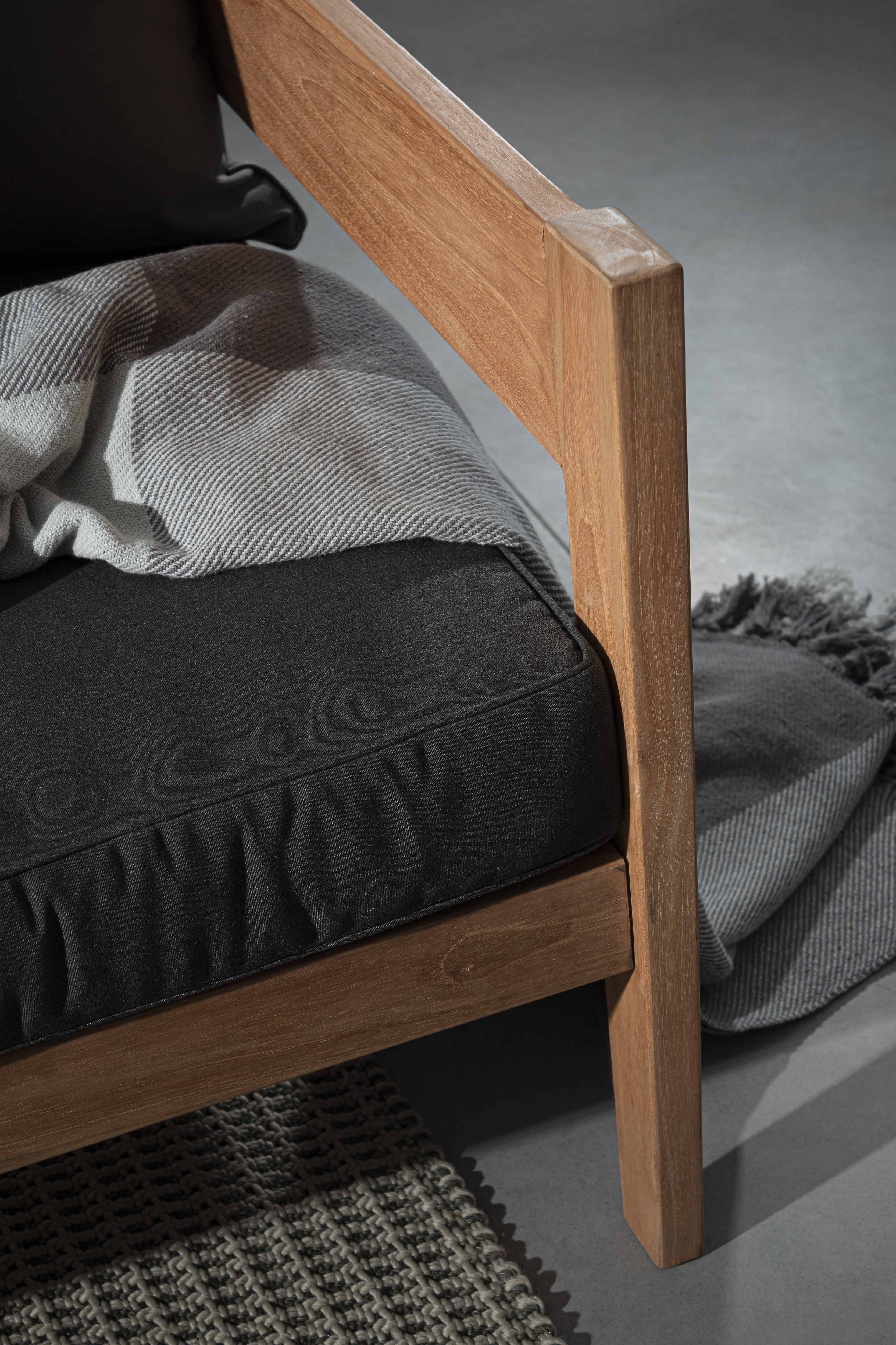 Fauteuil de jardin en bois teck avec coussins noir Kajo