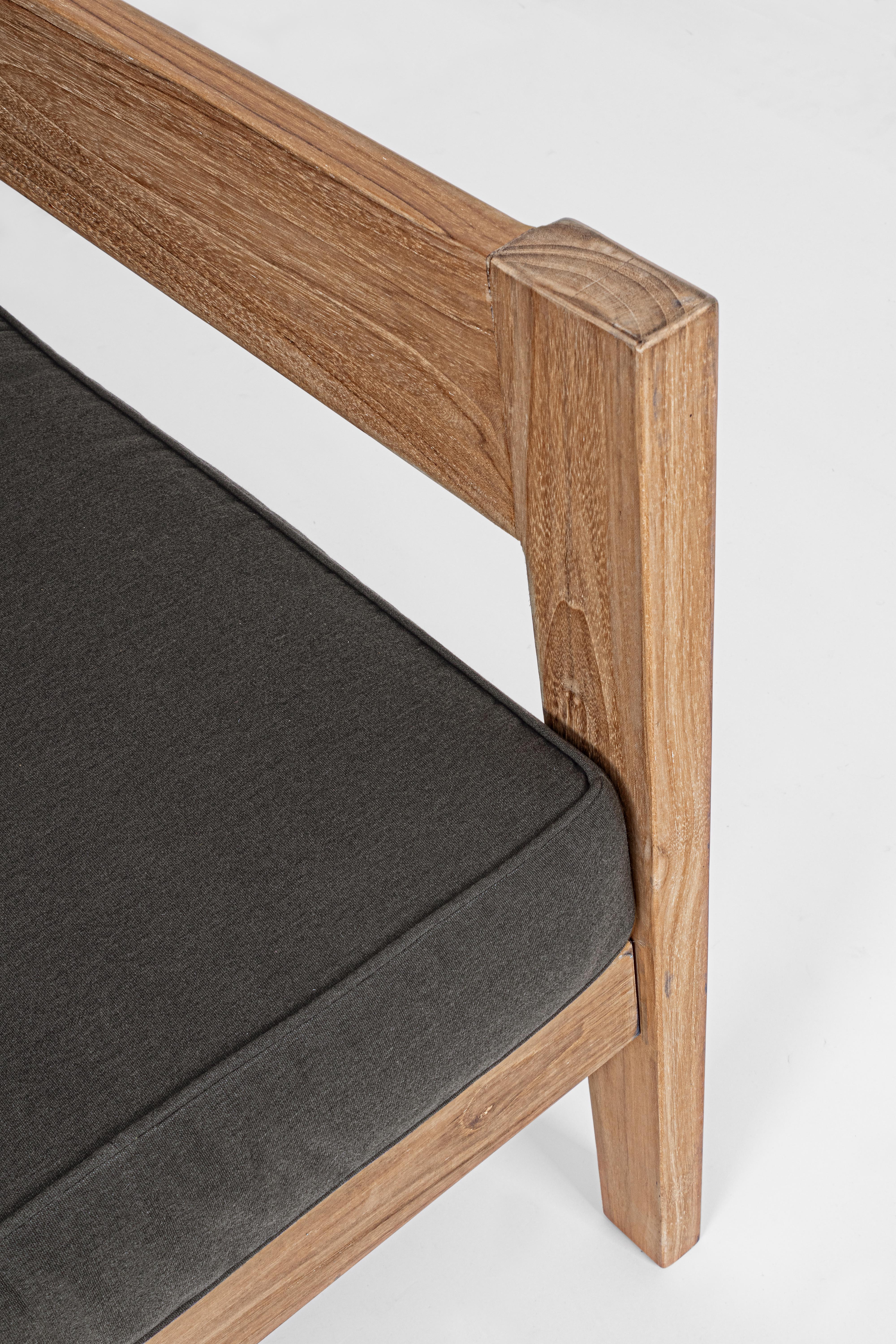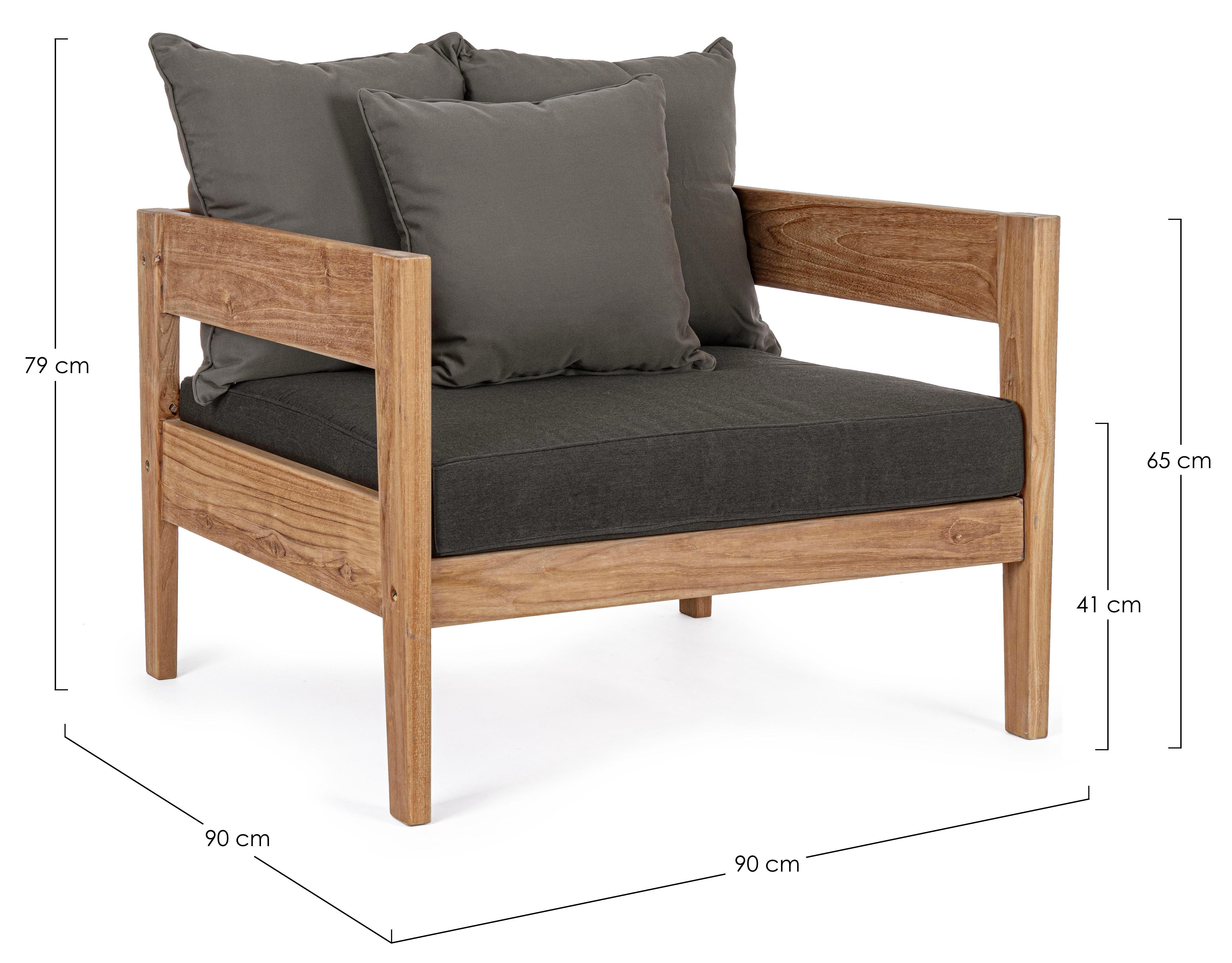 En bois teck, ce fauteuil de jardin est très robuste. Ses coussins sont très douillets et soyeux, vous aurez vraiment beaucoup de plaisir à vous y asseoir. Son tissu est fait pour résister aux rayons du soleil, vous n'avez pas à craindre sa durabilité. Matière : Bois teck et coussins Couleur : Noir et bois foncé Dimensions : L 90 x P 90 x H 81 cm Nombre de colis : 1 Fabrication : Espagne Garantie : 2 ans