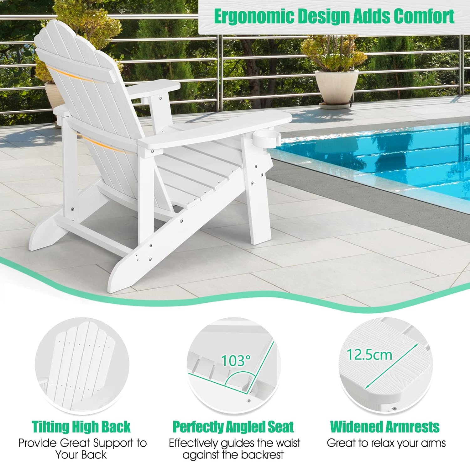 | Libellé | Fauteuil de jardin exterieur relaxant,chaise adirondack en plastique ergonomique avec porte-gobelet,blanc |