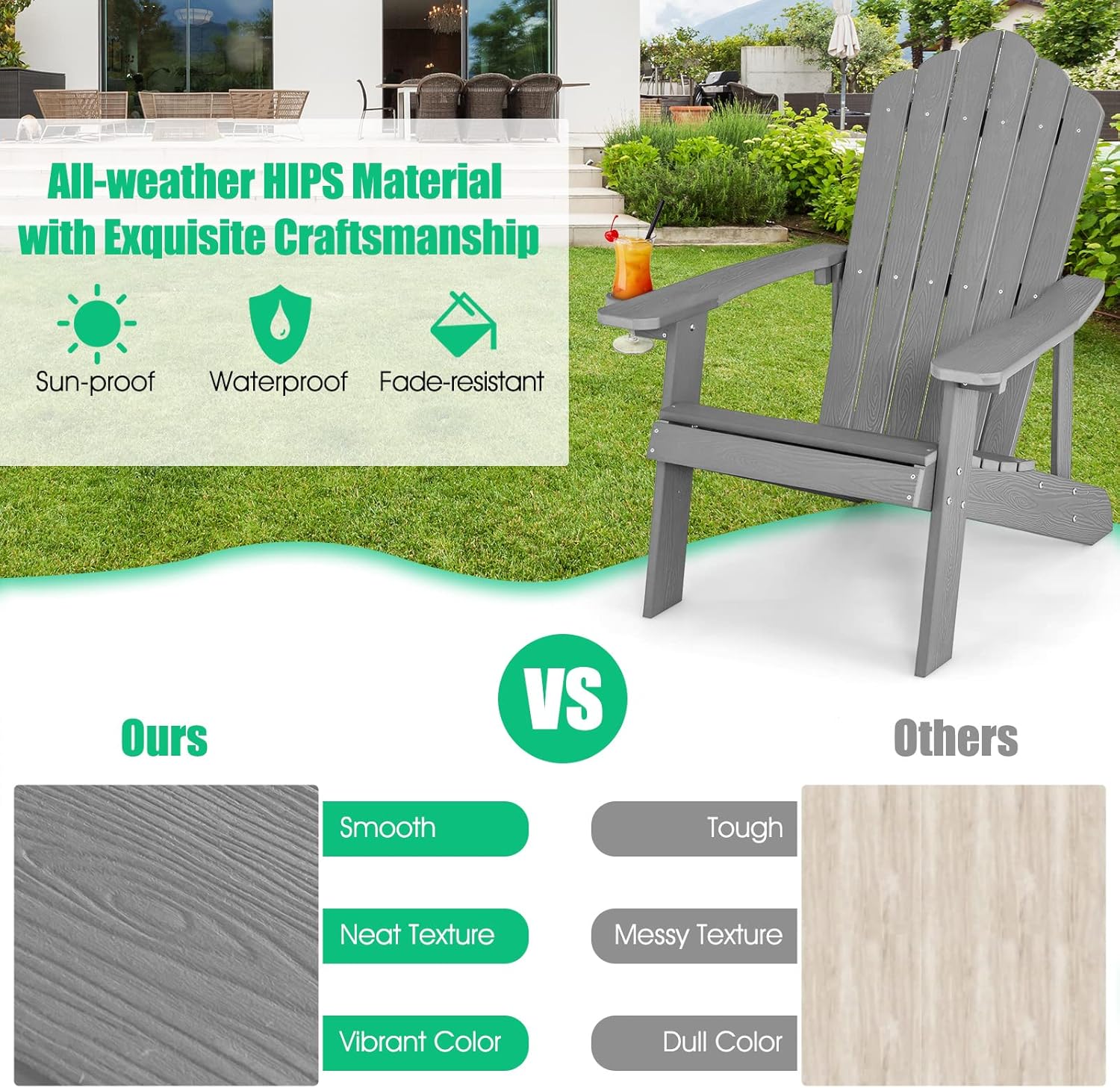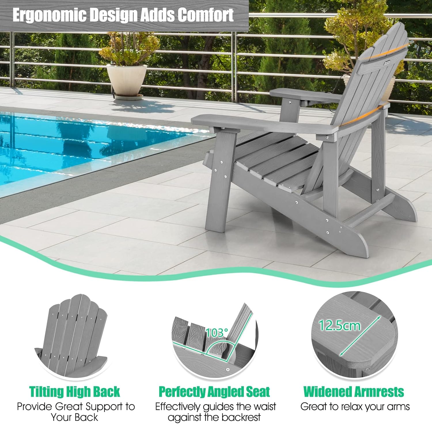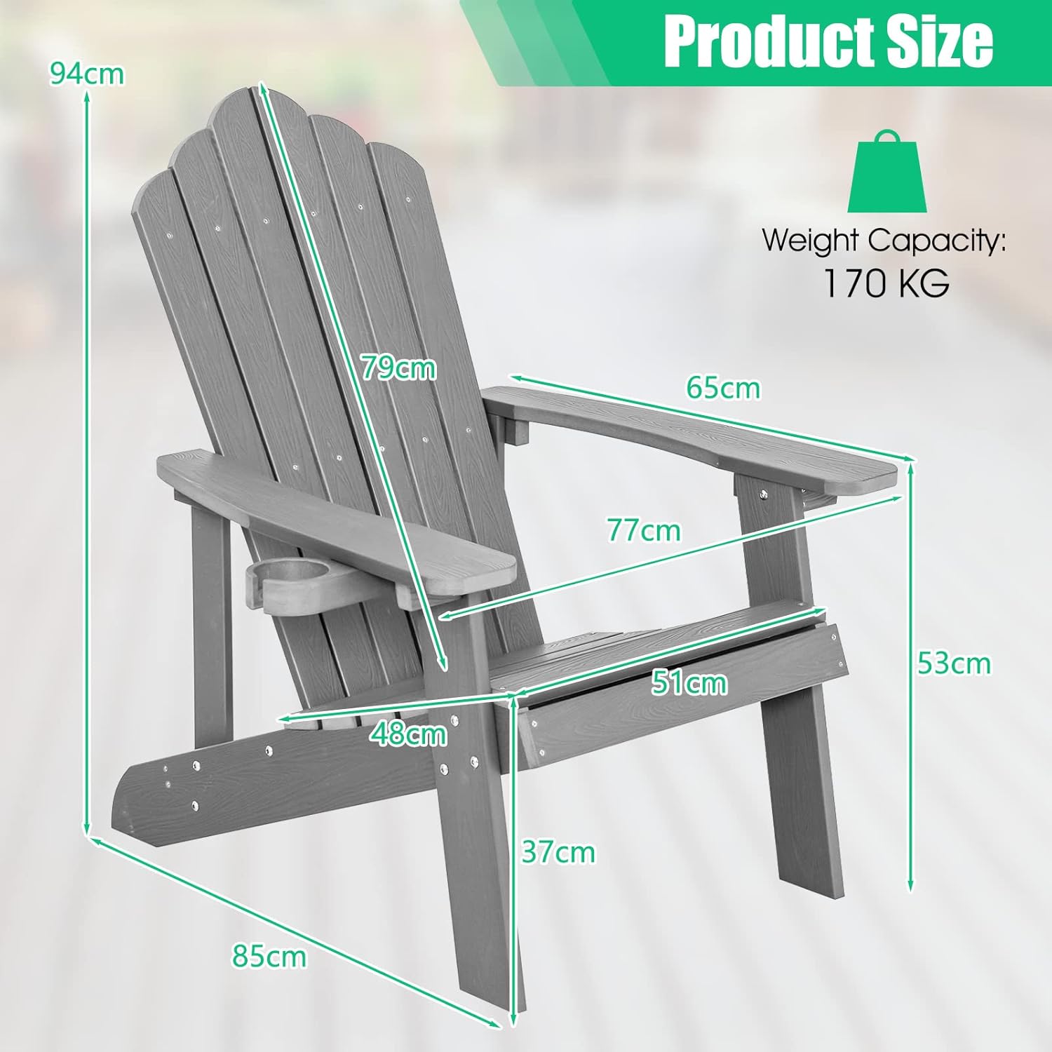 Fauteuil de jardin exterieur relaxant,chaise adirondack en plastique ergonomique avec porte-gobelet,gris