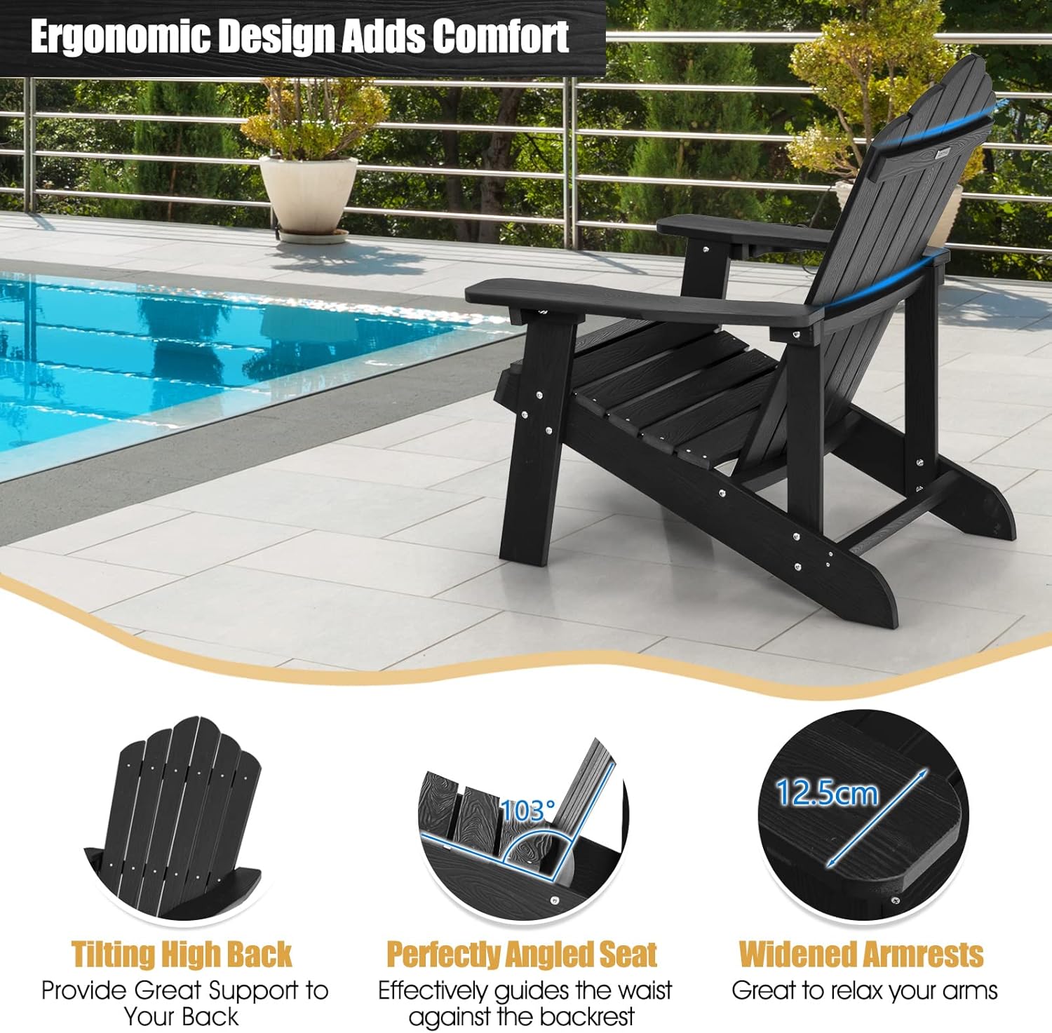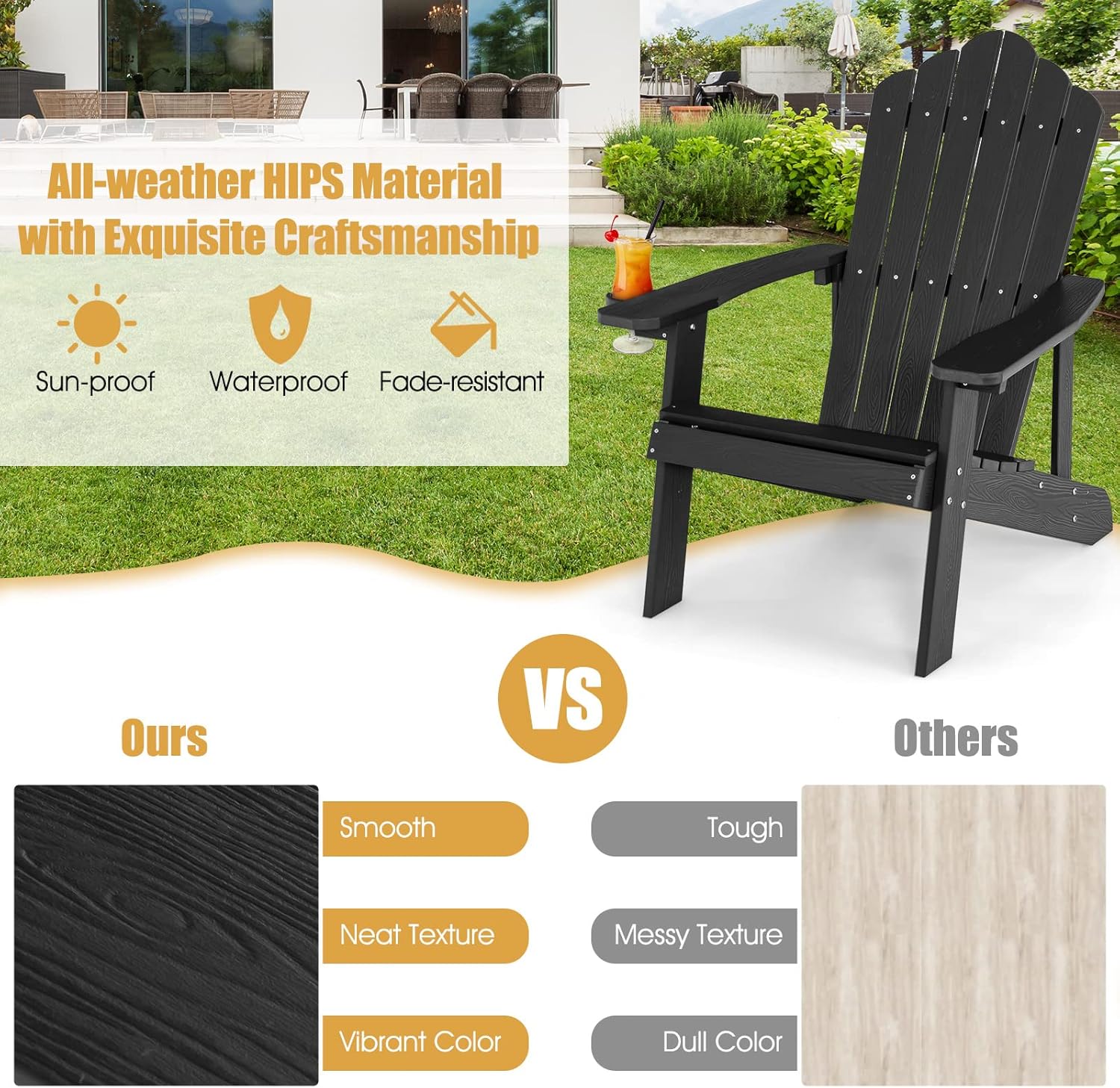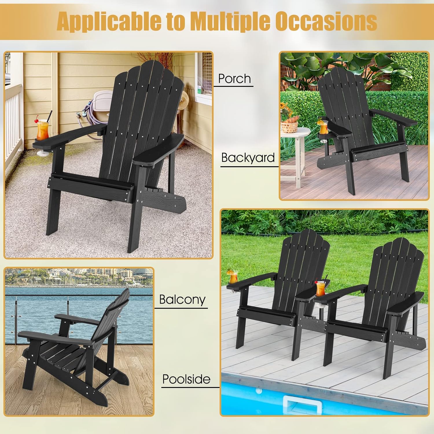 Fauteuil de jardin exterieur relaxant,chaise adirondack en plastique ergonomique avec porte-gobelet,noir