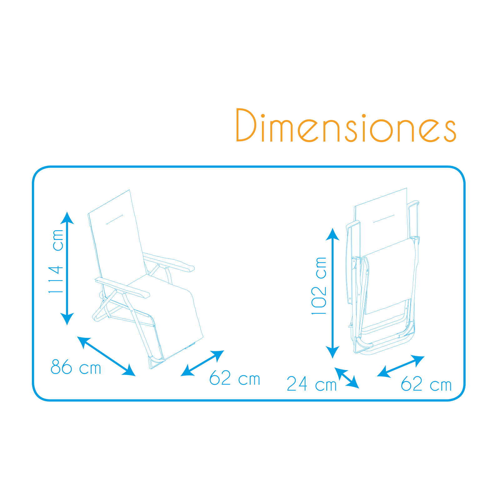 Le dossier de ce fauteuil peut être placé dans 6 positions différentes pour votre confort. Dans la dernière position, le dossier se plie plus que d'habitude pour permettre plus de repos. Lorsque le dossier se baisse, le repose-pied se lève. Les pieds en H s'adaptent mieux aux irrégularités du sol. Il est fabriqué en tubes d'acier robustes ovales de 40x20 mm, peints en époxy anti-corrosion et avec un rembourrage de 5 cm avec un dossier ergonomique pour votre confort. Il est pliable pour que vous puissiez l'emmener partout où vous en avez besoin, à la plage, à la piscine ou au camping, sans prendre beaucoup de place. Il est équipé de pieds stabilisateurs pour plus de sécurité et peut également être lavé à l'eau. Caractéristiques : - Pour 1 personne. - Utilisation en extérieur. - Tubes d'acier ovales : 40x20 mm. - Dimensions: 86x62x114 cm. - Matériel: Tissu polycoton avec mousse de polyester. - Rembourrage: 5 cm et tête anatomique. - Couleur : Bleu et Jaune avec des fleurs. - Poids maximum supporté: 100 kg. - Poids: 7 kg.