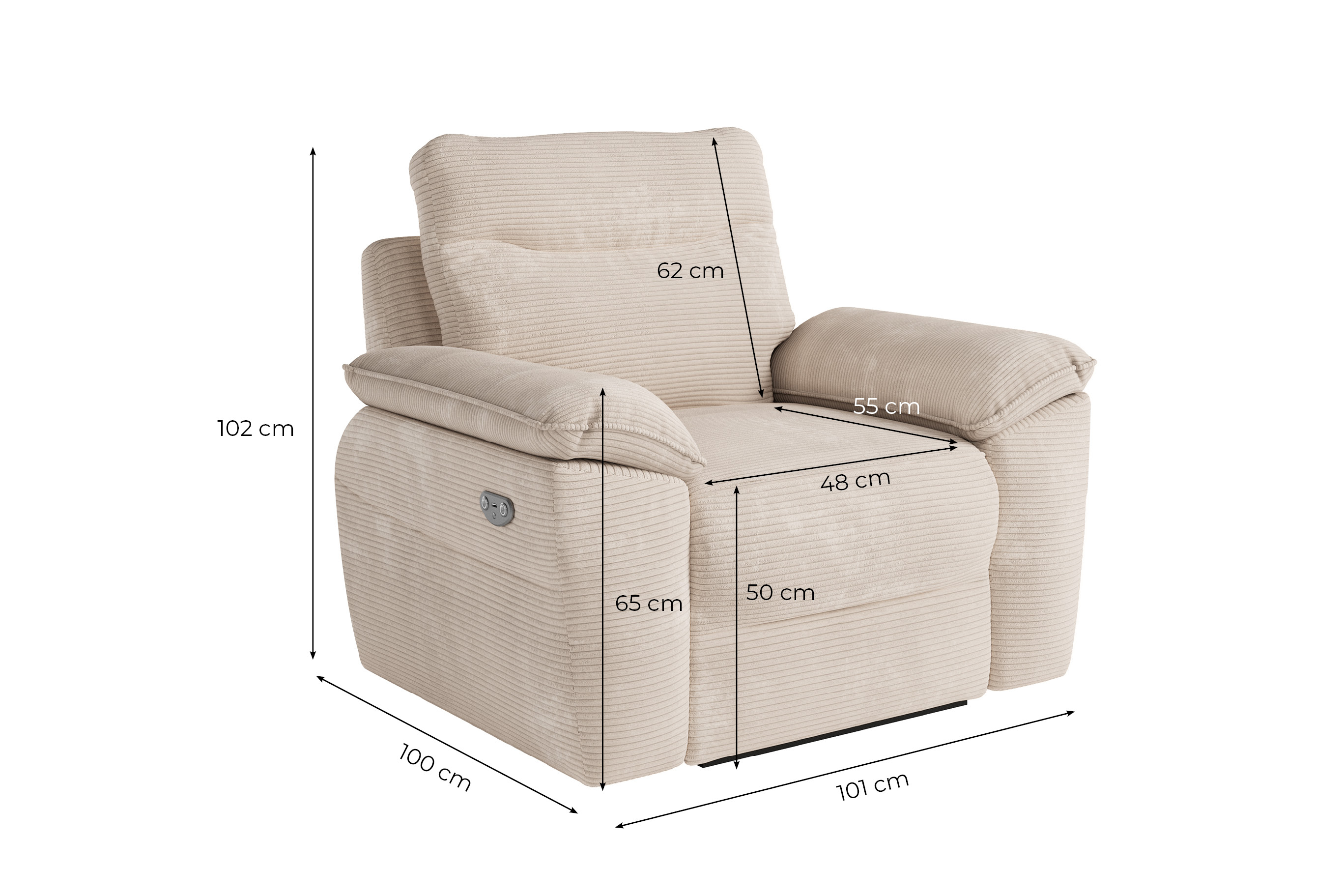 Fauteuil de relaxation électrique ROSS en velours côtelé - Beige