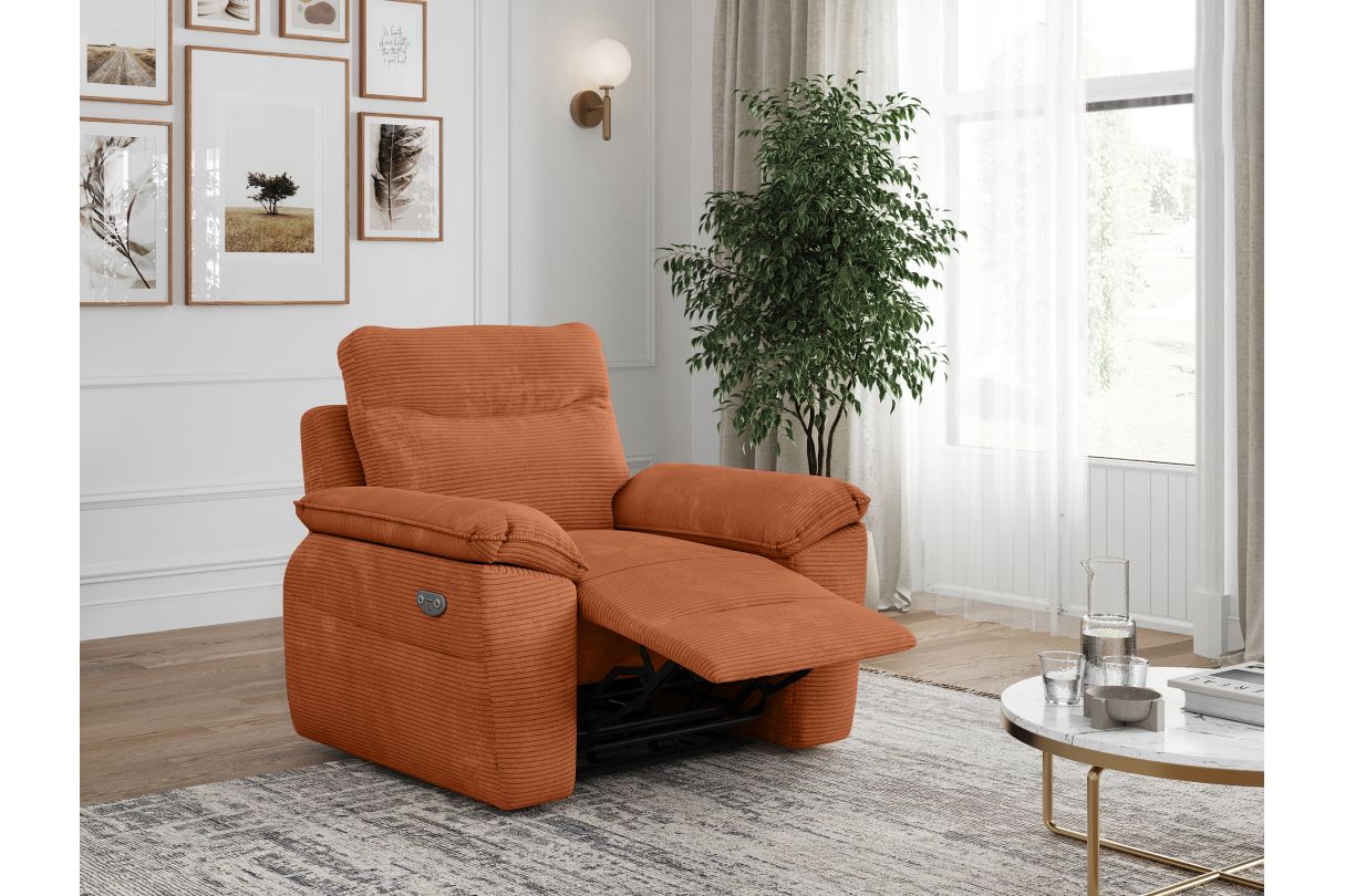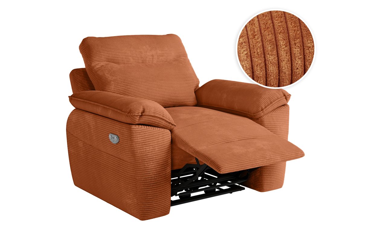 Fauteuil de relaxation électrique ROSS en velours côtelé - Terracotta