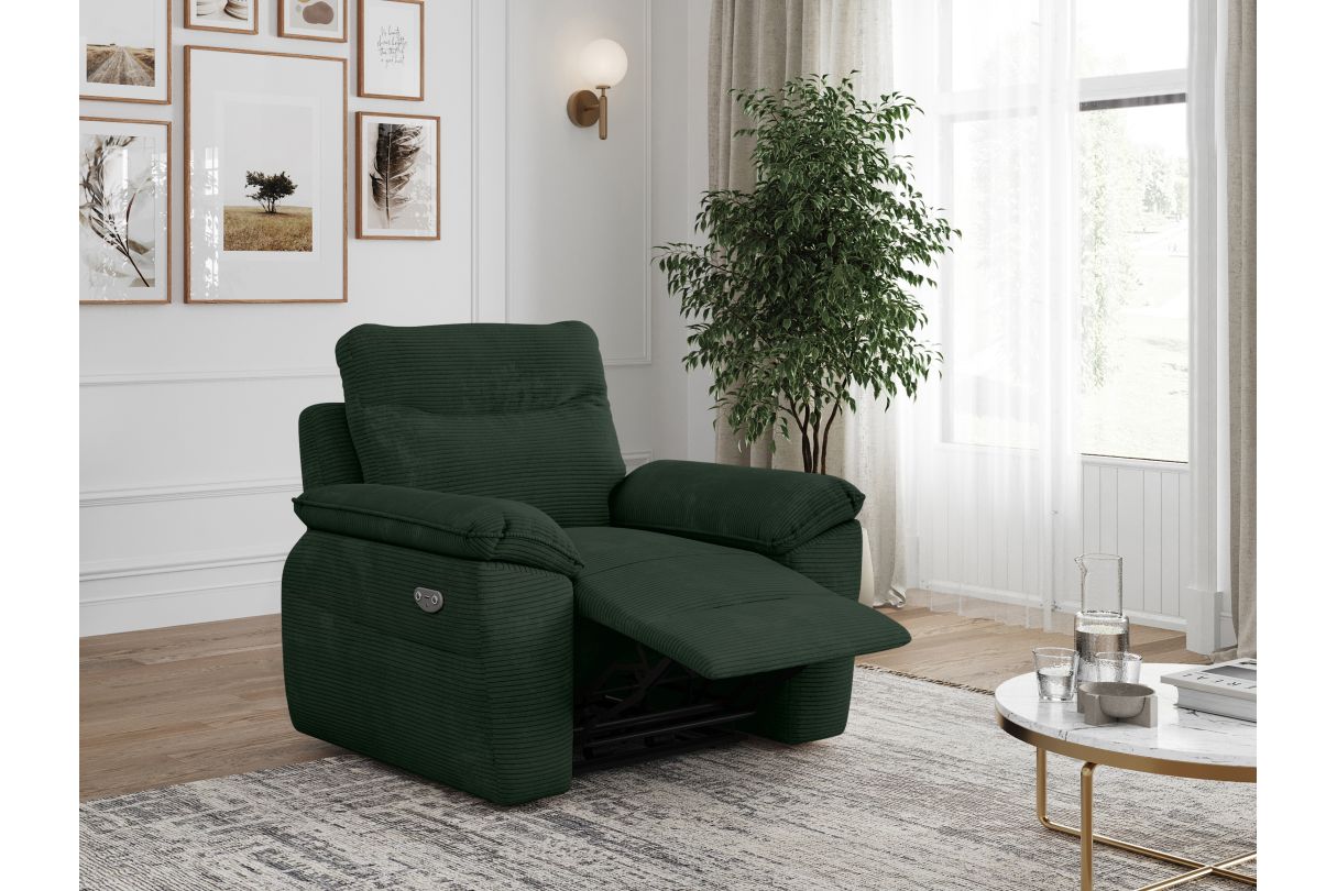 Fauteuil de relaxation électrique ROSS en velours côtelé - Vert foncé