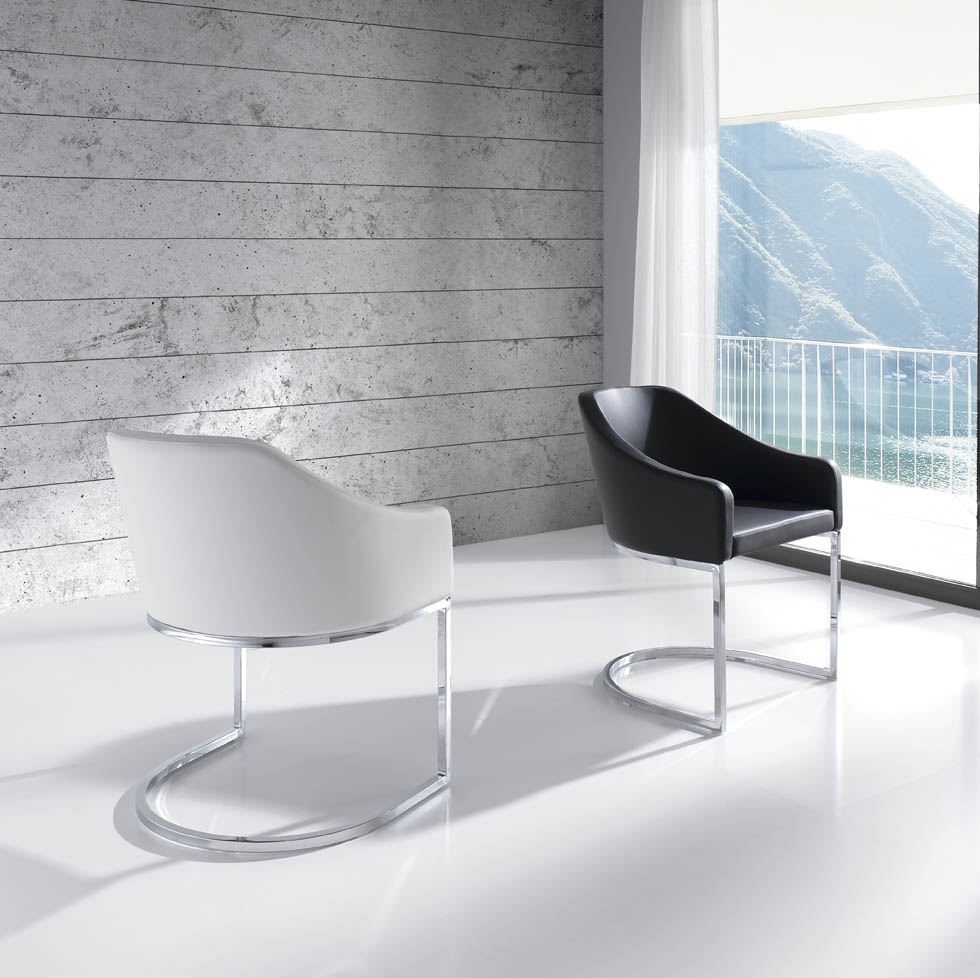 Fauteuil design PU noir et pieds acier inoxydable Arka - Lot de 2