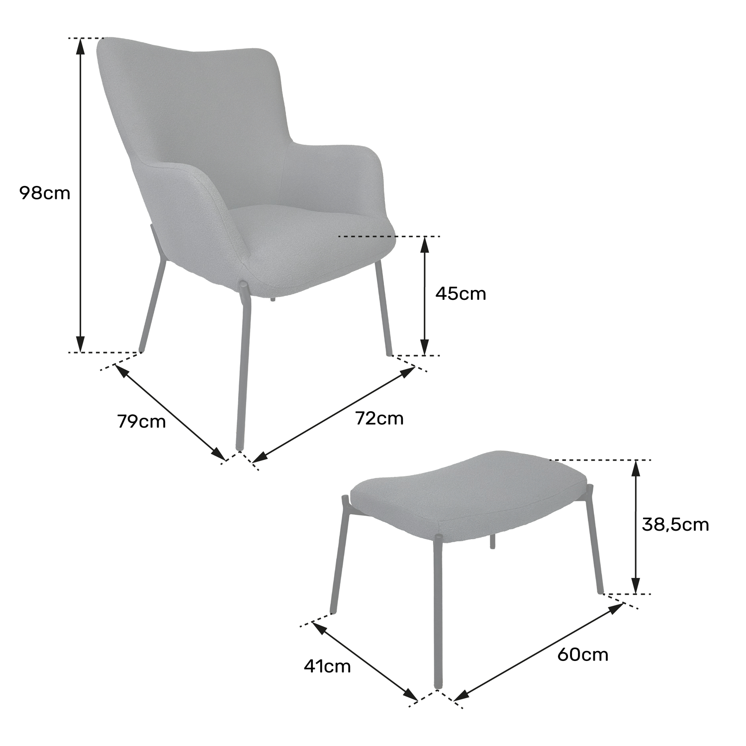 | Libellé | Fauteuil en tissu boucle gris avec repose-pieds EIRA |