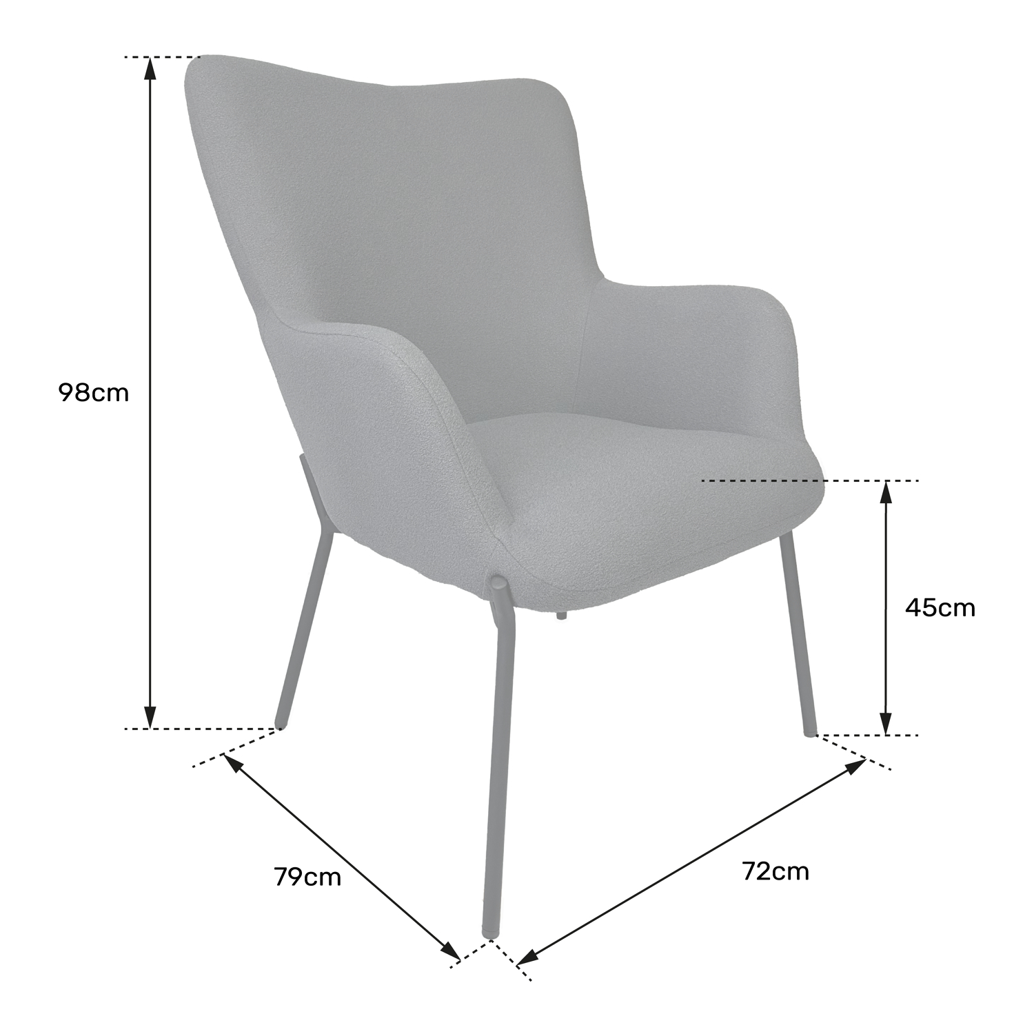 - Fauteuil : P 79 × l 72 × H 98cm