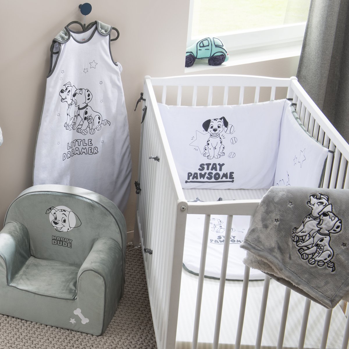Dans un joli mélange de blanc et de gris, il est orné d'impressions qualitatives 101 Dalmatiens.