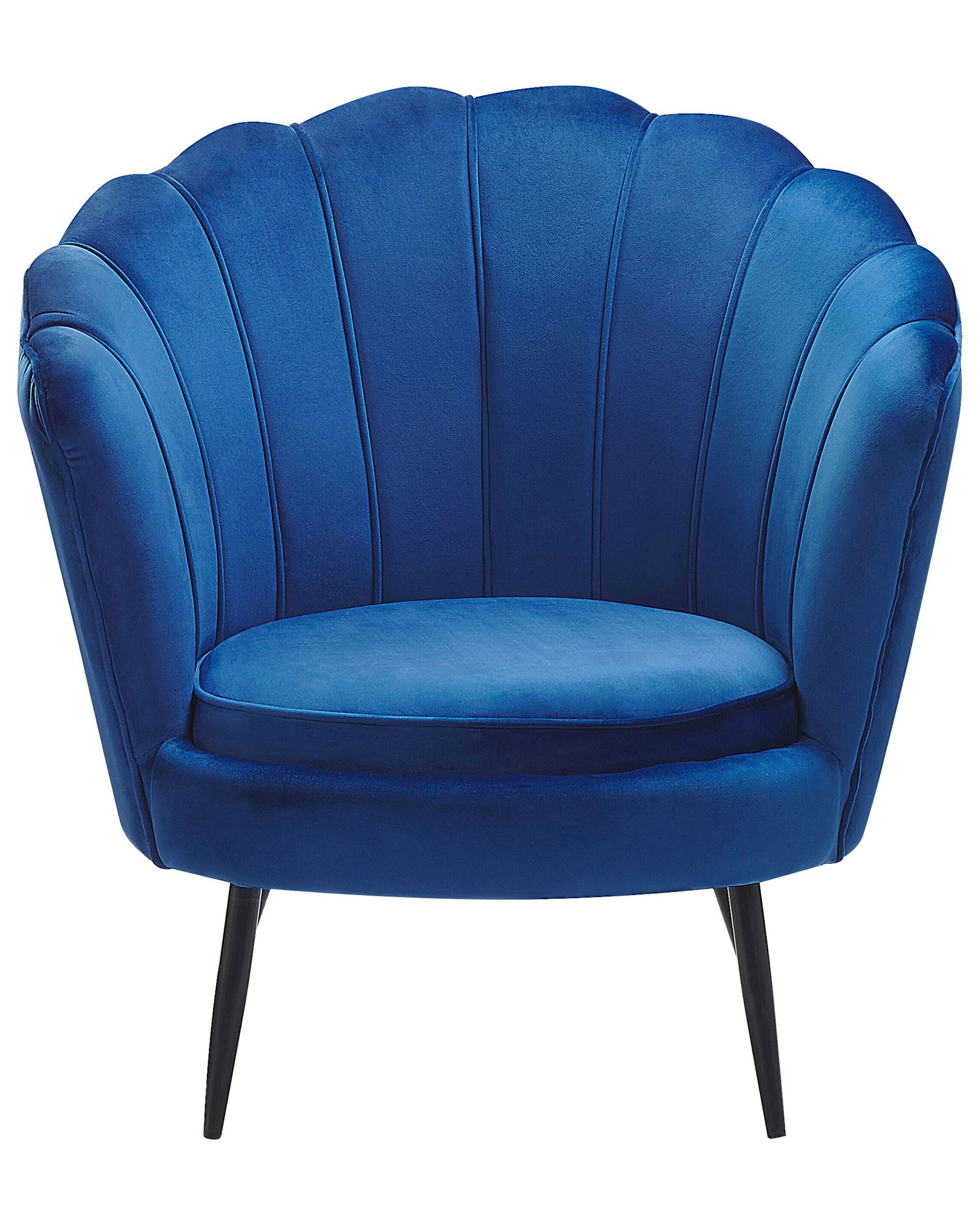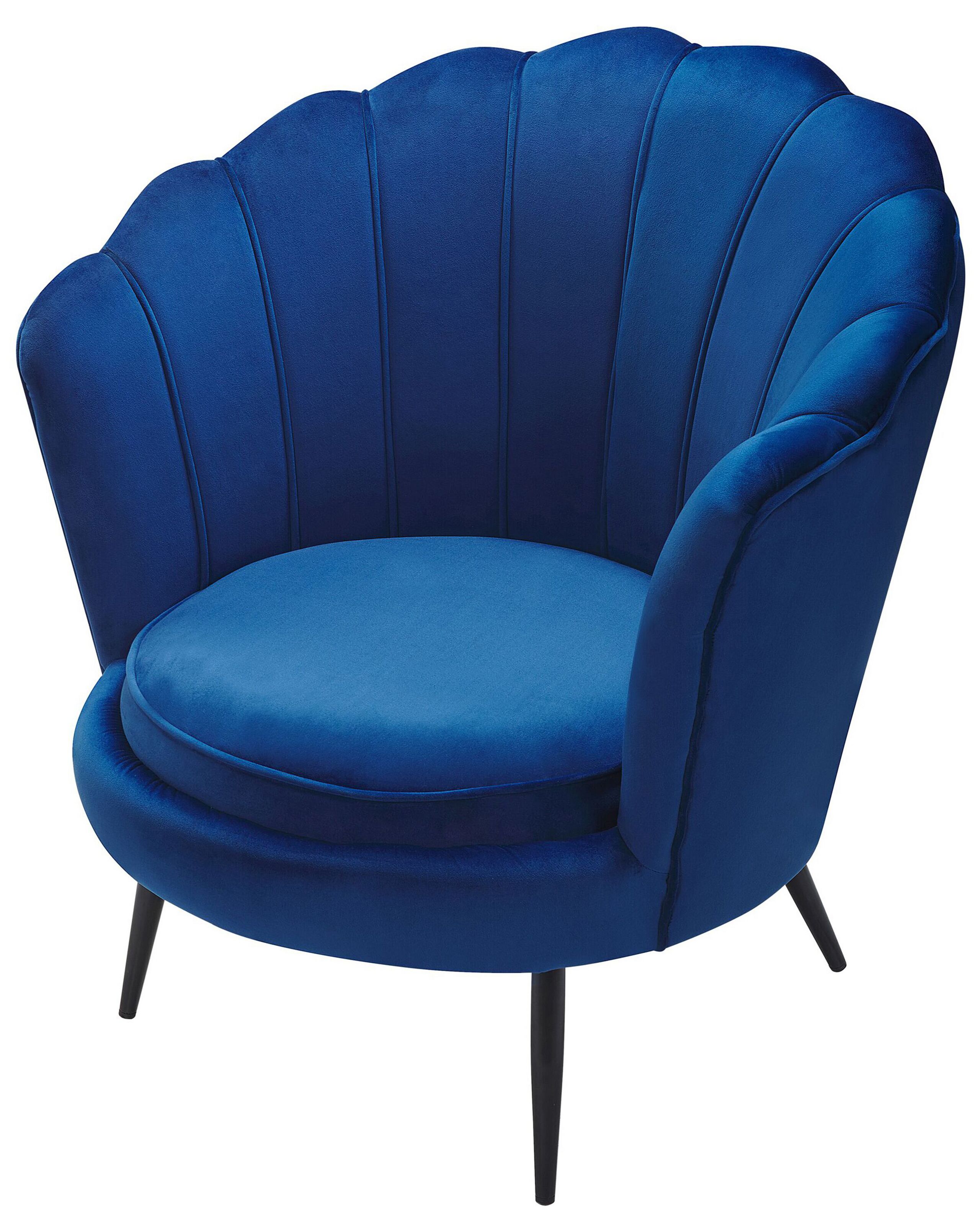 Fauteuil coquillage style glamour et rétro tapissé en velours bleu foncé. Un choix parfait pour tous ceux et celles qui cherchent à apporter une touche rétro et glamour à leur intérieur. Ce magnifique fauteuil coquillage, élégamment tapissé en velours bleu cobalt de qualité, est un véritable petit bijou déco capable de rafraîchir instantanément le look de chaque chambre ou salon. Son rembourrage épais, ses coutures décoratives et ses pieds obliques tendance en métal noir font de ce superbe fauteuil design un meuble à la fois très confortable et robuste. C'est inévitable, vous allez tout simplement l'adorer !