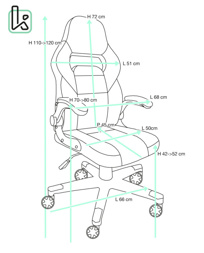 - Hauteur d'assise : +/- 42-->52 cm