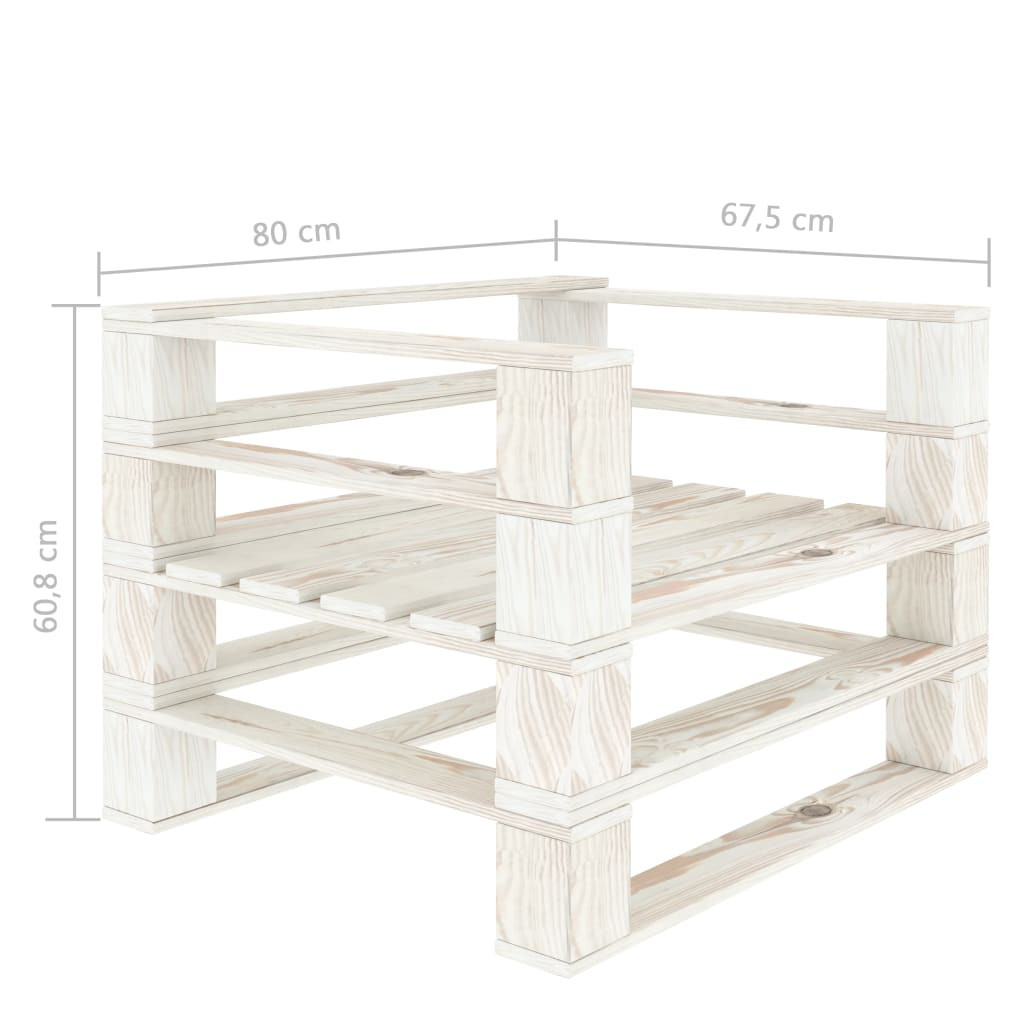 Notre fauteuil palette de jardin sera un choix idéal pour vous détendre, profiter du beau temps, faire une sieste ou discuter en famille ou entre amis. Avec son design intemporel de palette, le canapé en bois ajoutera une touche de charme rustique à votre terrasse, jardin ou salon. Fabriqué en bois de pin de qualité, ce fauteuil palette d'extérieur est durable, résistant aux intempéries et écologique. Ce fauteuil de patio a une construction solide et nécessite peu d'entretien. Avec ses coussins (non inclus), notre fauteuil d'extérieur fournira le plus grand confort pour vous et vos invités. Le fauteuil palette de jardin est facile à assembler. Veuillez noter que le bois est un produit naturel pouvant présenter des imperfections. Couleur : blanc Matériau : Bois de pin Dimensions : 80 x 67,5 x 60,8 cm (I x P x H) Largeur du siège : 60,8 cm Profondeur du siège : 61,5 cm Hauteur du siège à partir du sol : 30,5 cm L'article convient aussi bien à l'extérieur qu'à l'intérieur L'assemblage est requis