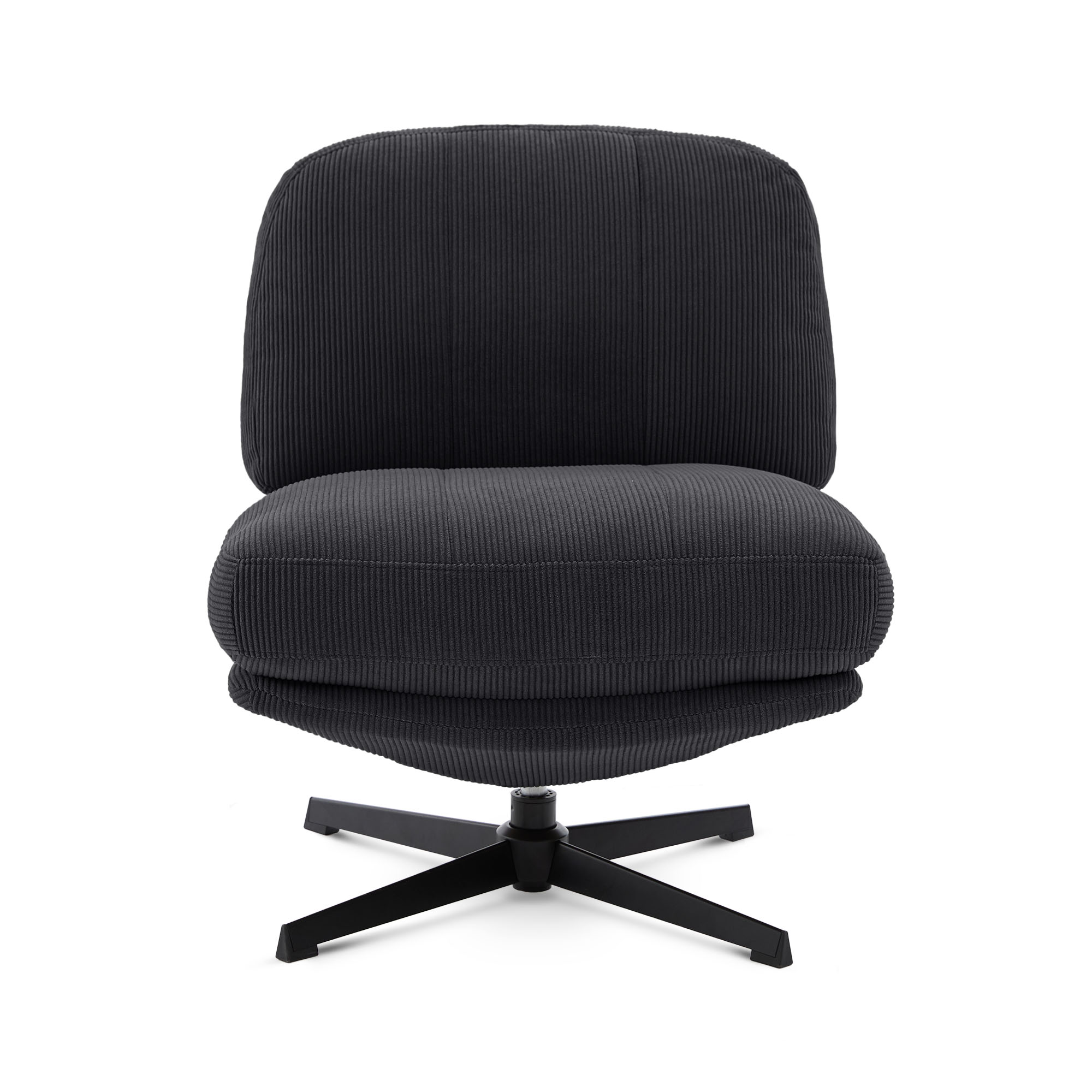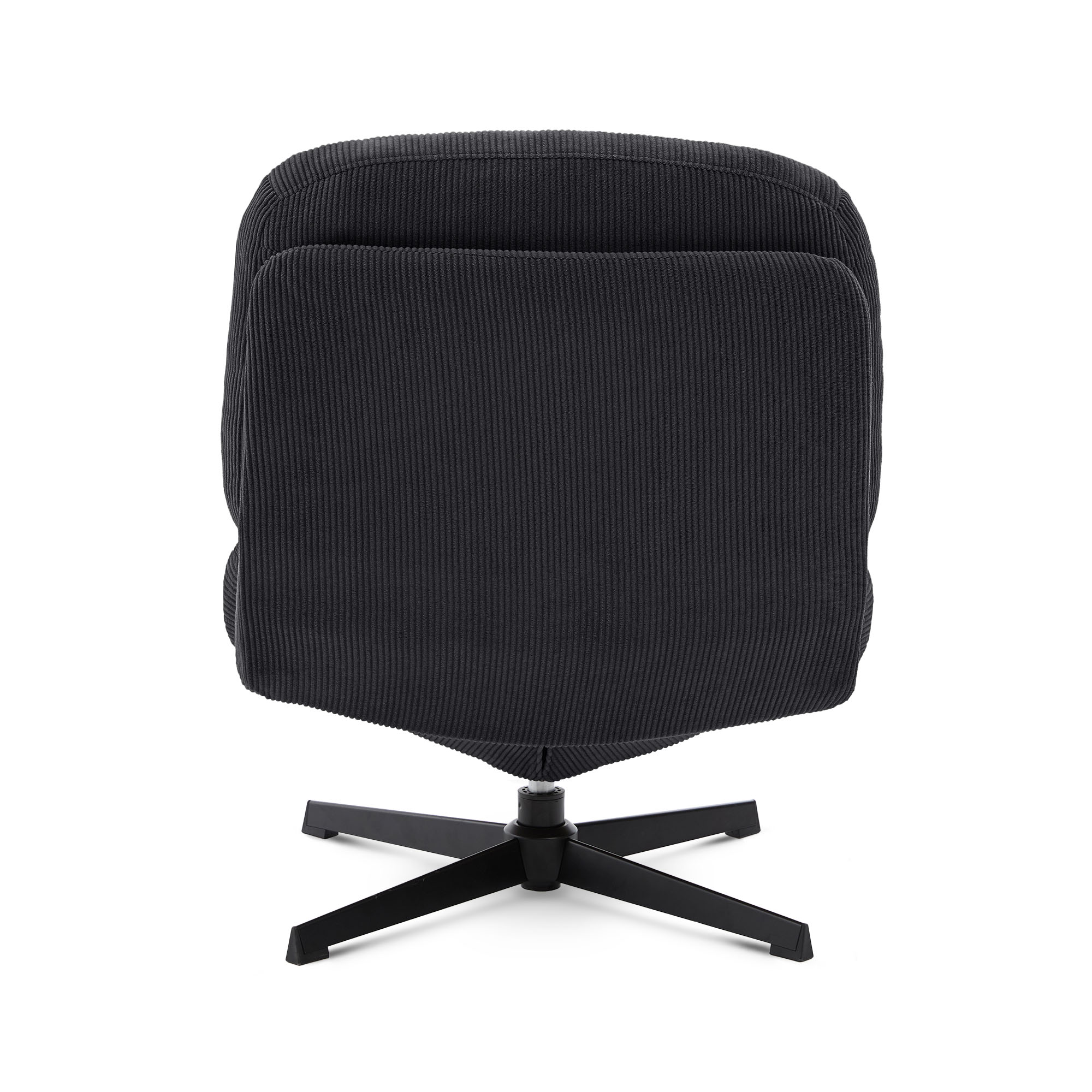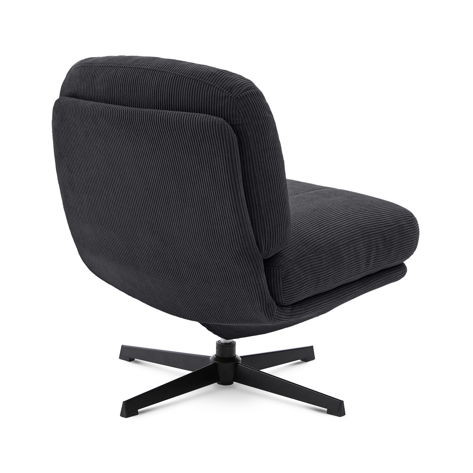 Fauteuil pivotant 360° velours côtelé anthracite pied métal noir LENA