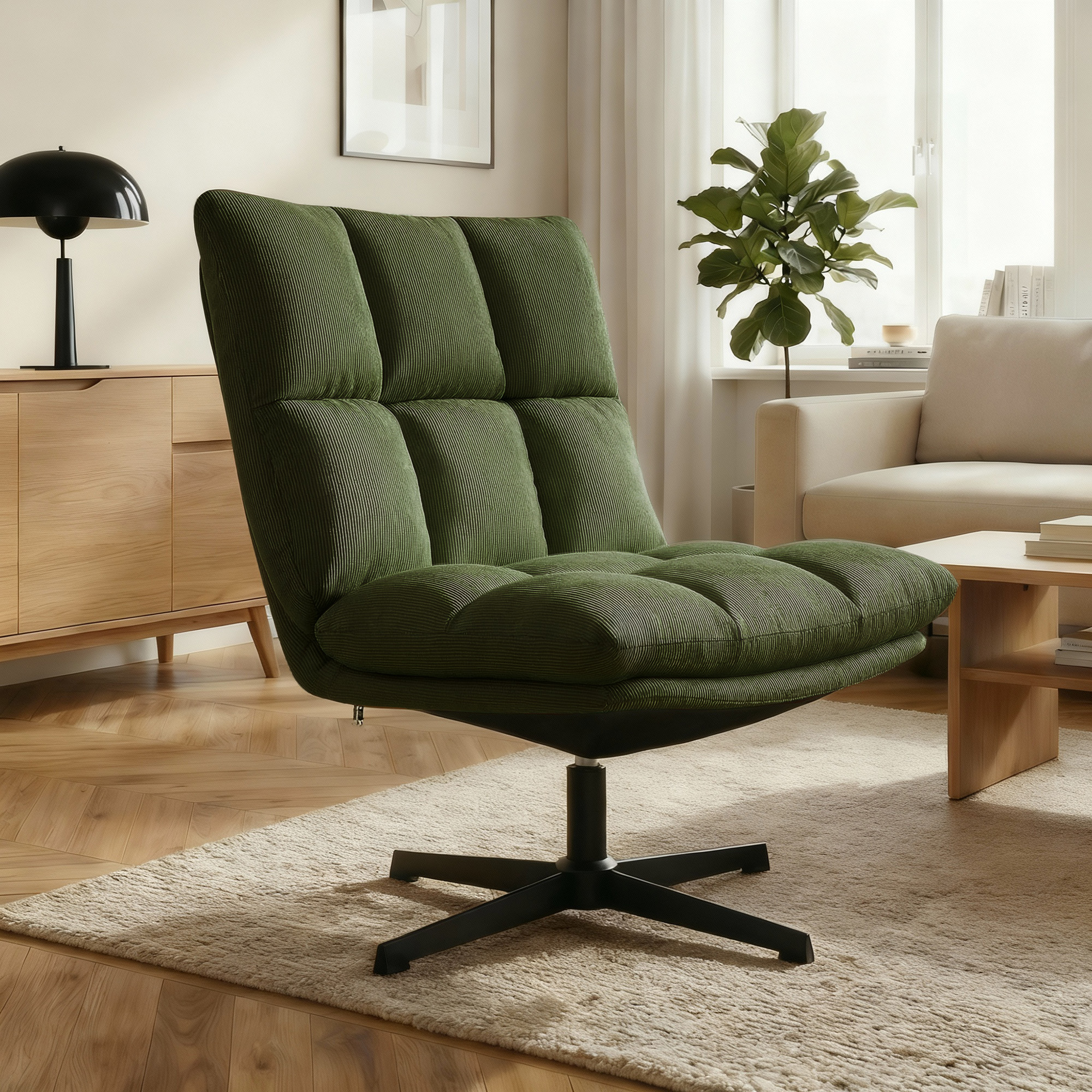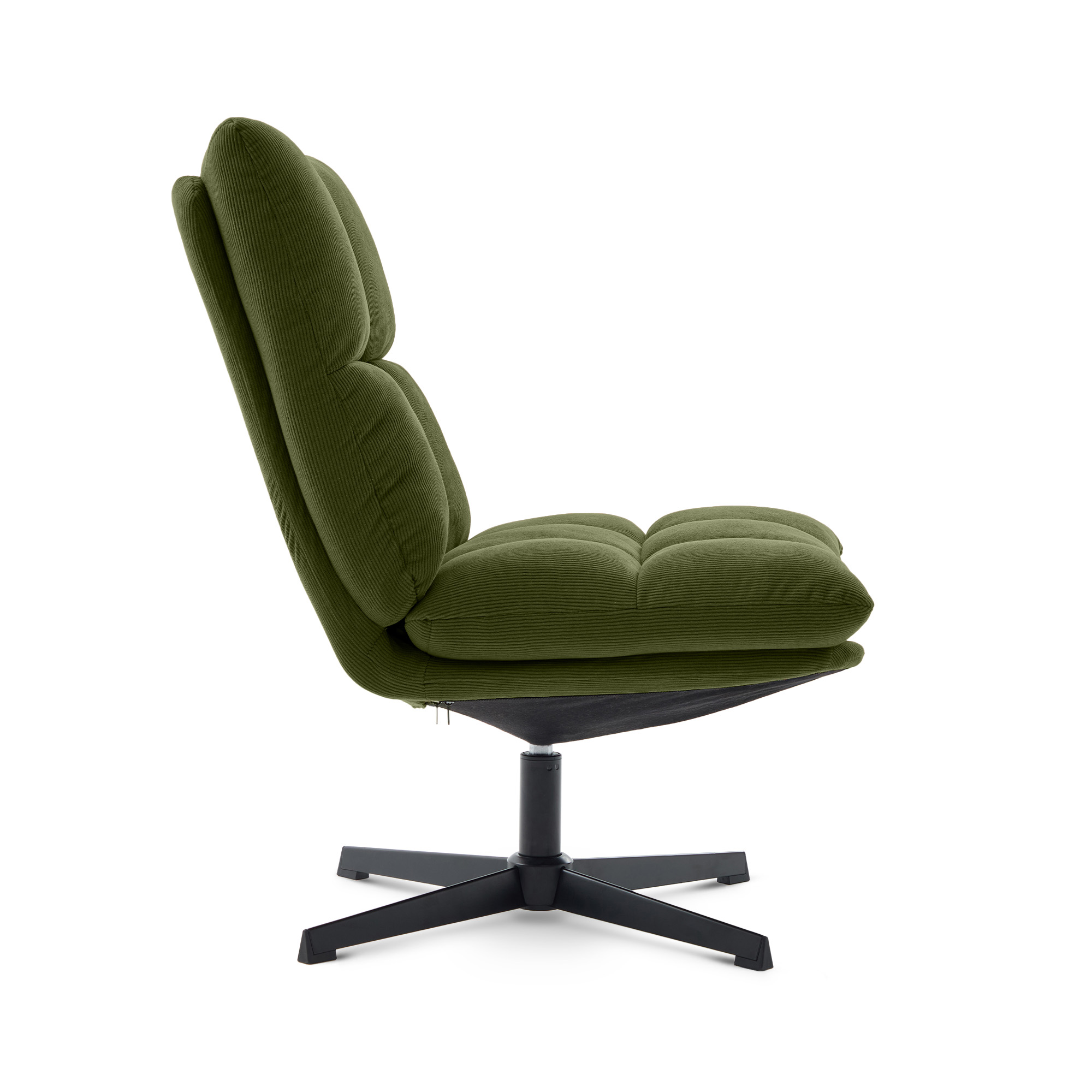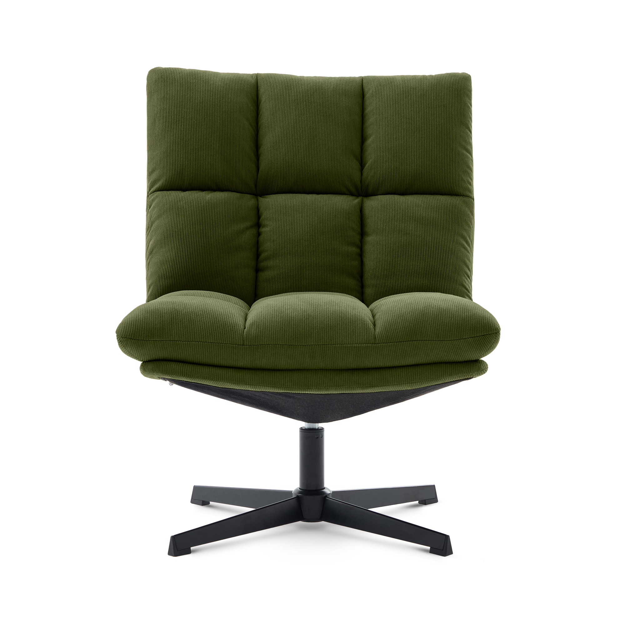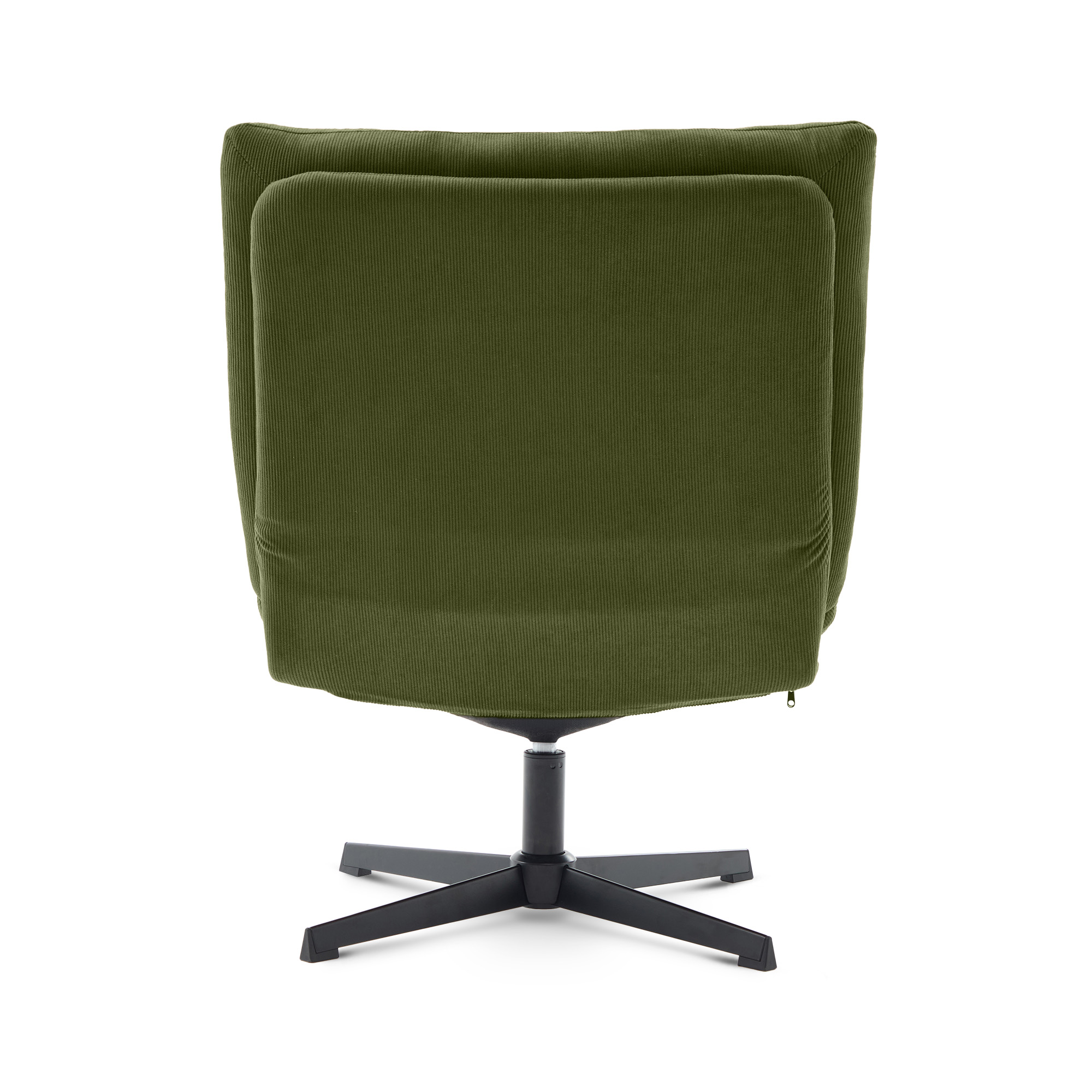 Fauteuil pivotant 360° velours côtelé kaki pied métal noir TAO