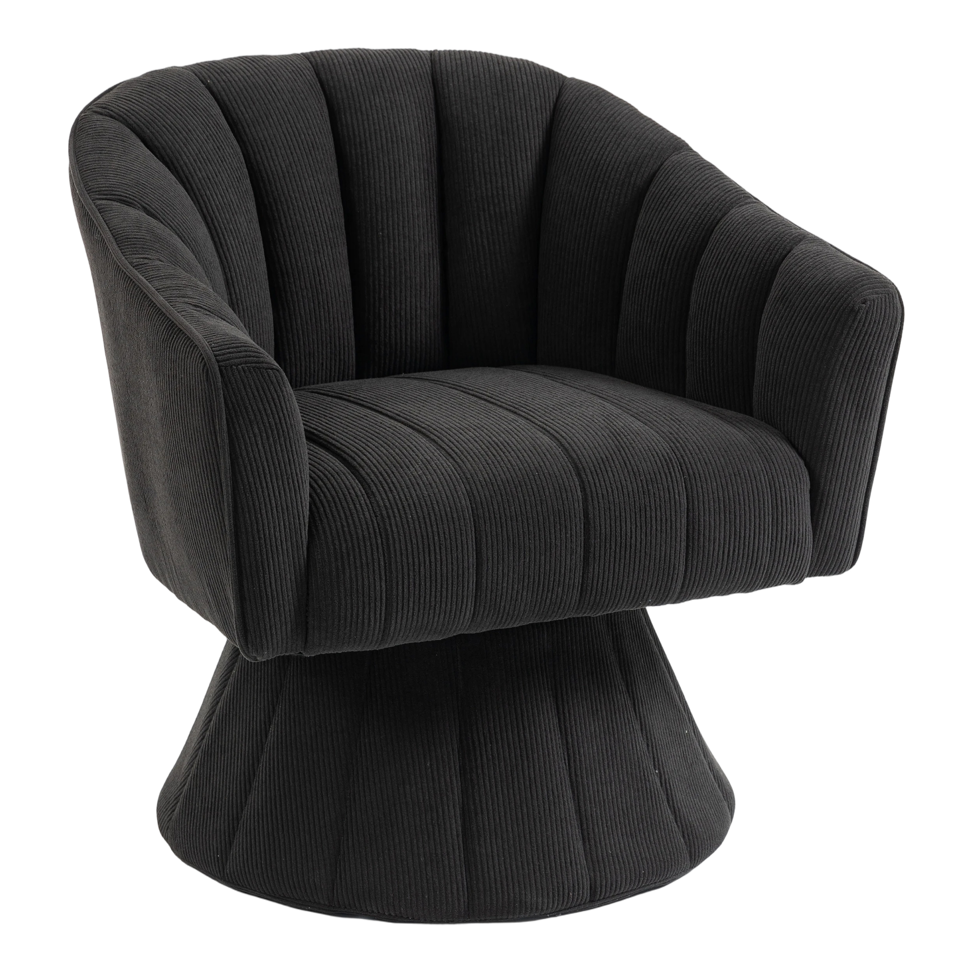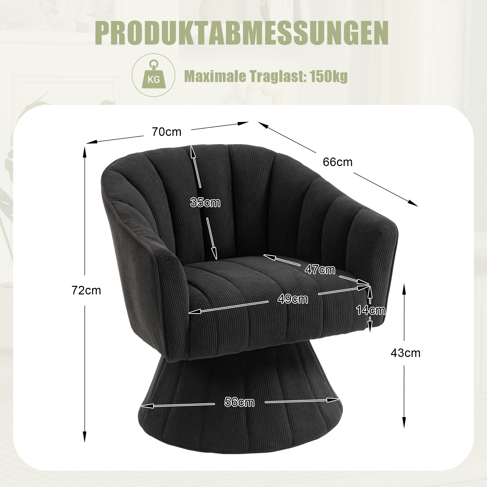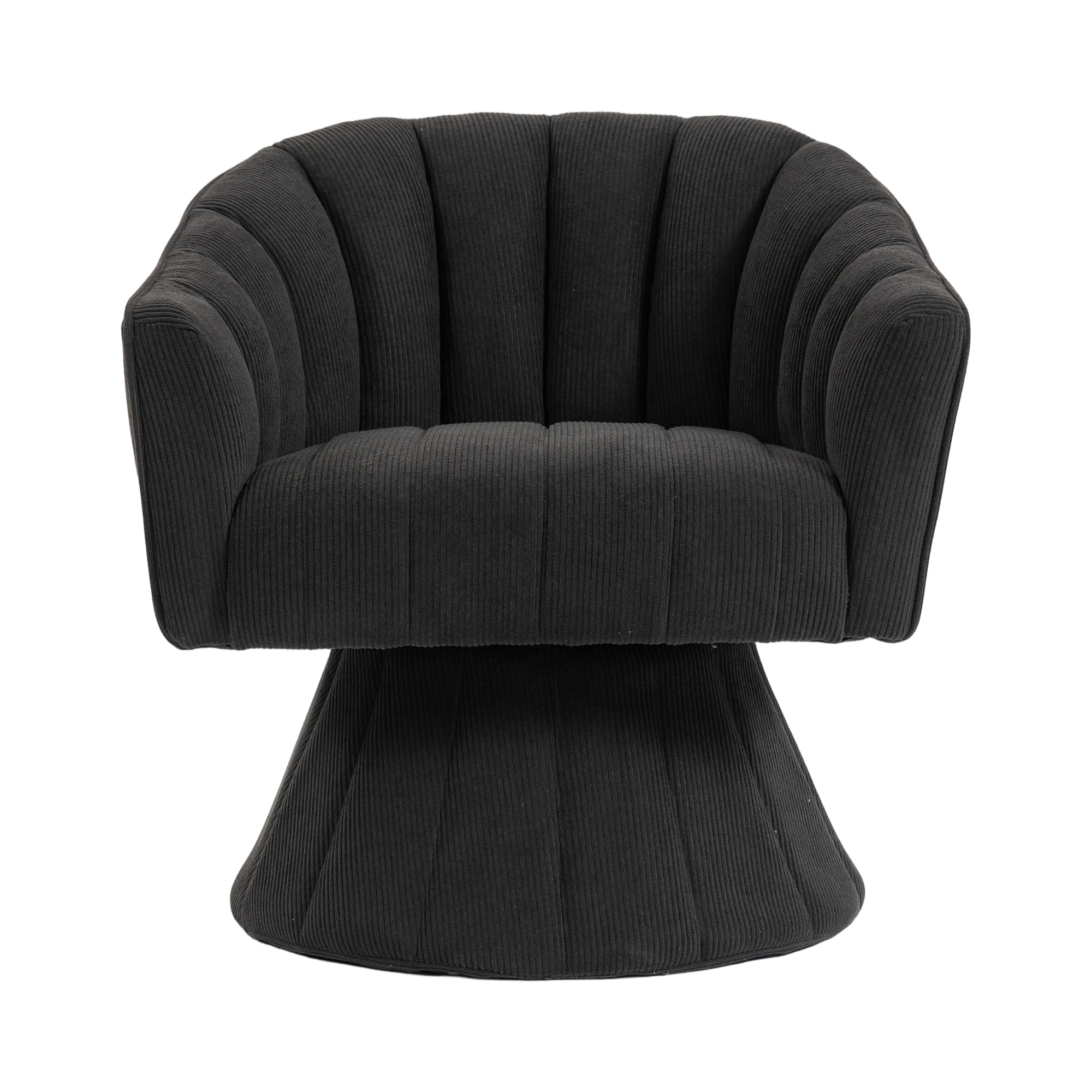 Fauteuil pivotant en tissu velours côtelé noir, assise profonde, pour salon, chambre et bureau