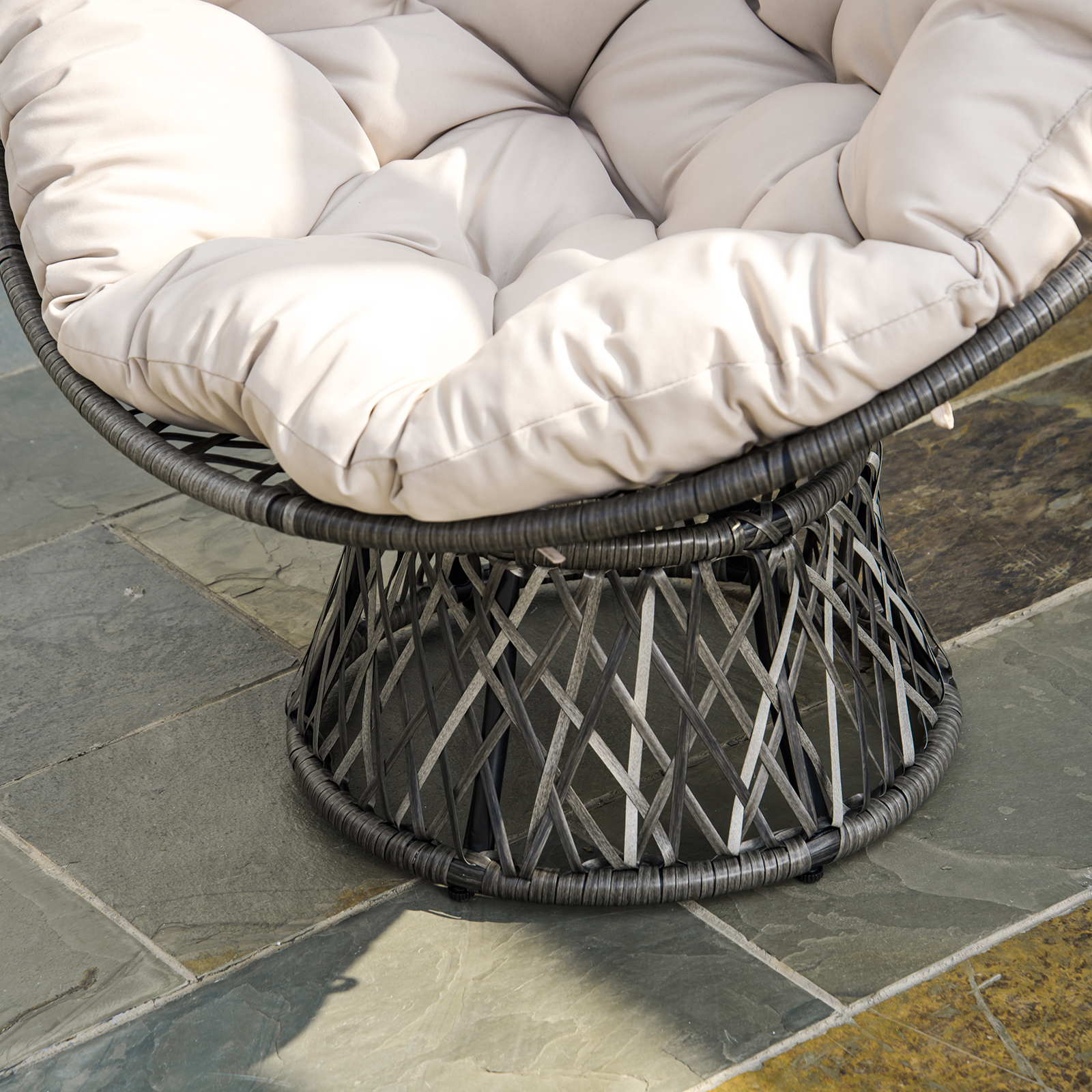 Ce magnifique fauteuil papasan ajoutera une touche cosy à votre intérieur ou extérieur. Pivotant à 360° et fourni avec un grand coussin moelleux, son confort d'assise est inégalable. À adopter de toute urgence !