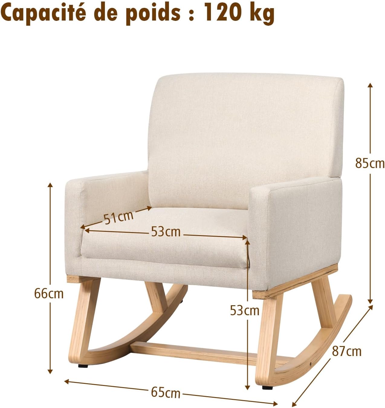 - 【Siège Confortable : 】La housse en tissu doux pour la peau offre un toucher agréable. Plus important encore, rempli d’éponge haute densité, le fauteuil à bascule moderne vous permet de vous asseoir plus confortablement.