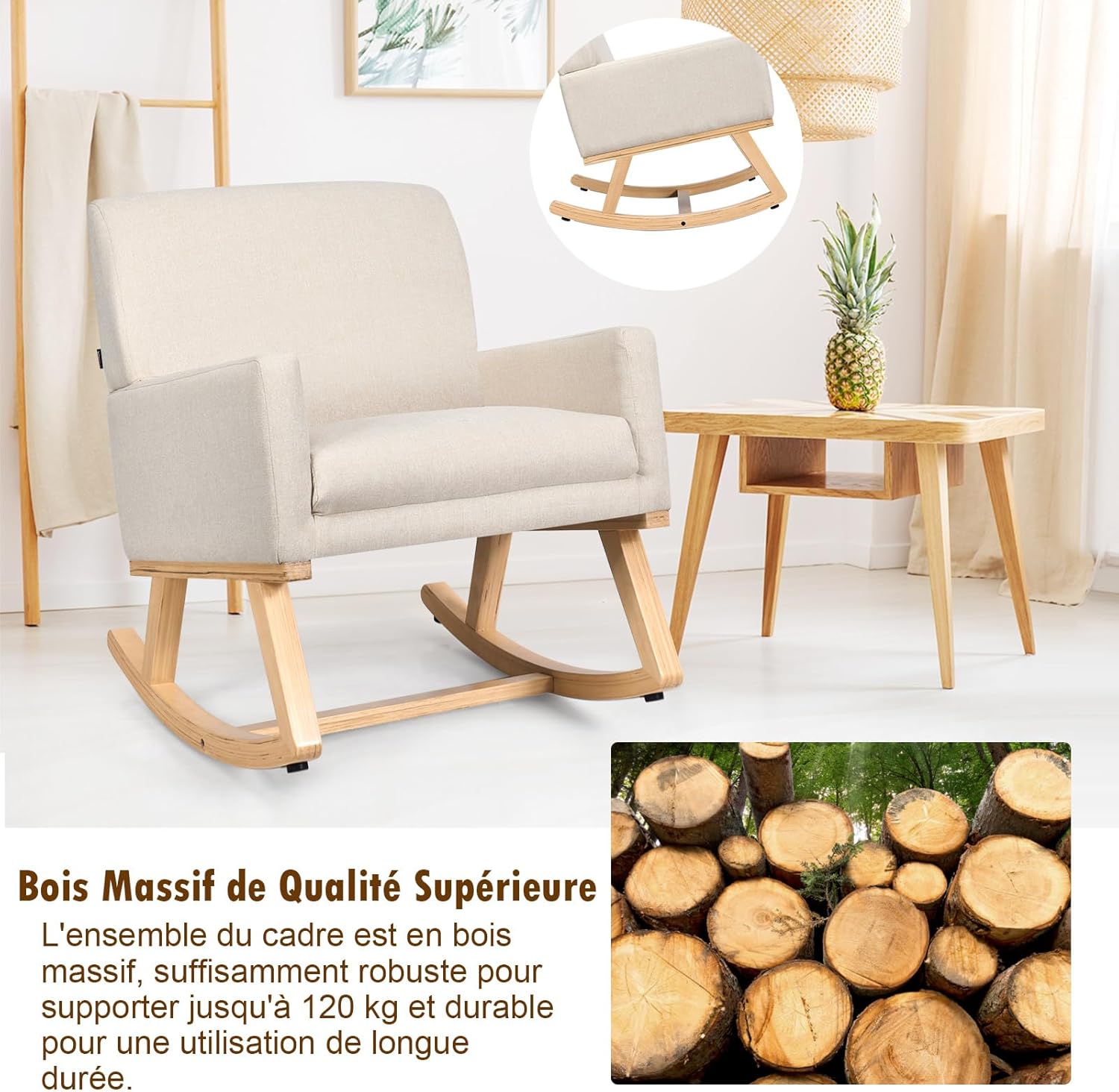Fauteuil salon à bascule, fauteuil à bascule scandinave avec base en bois massif