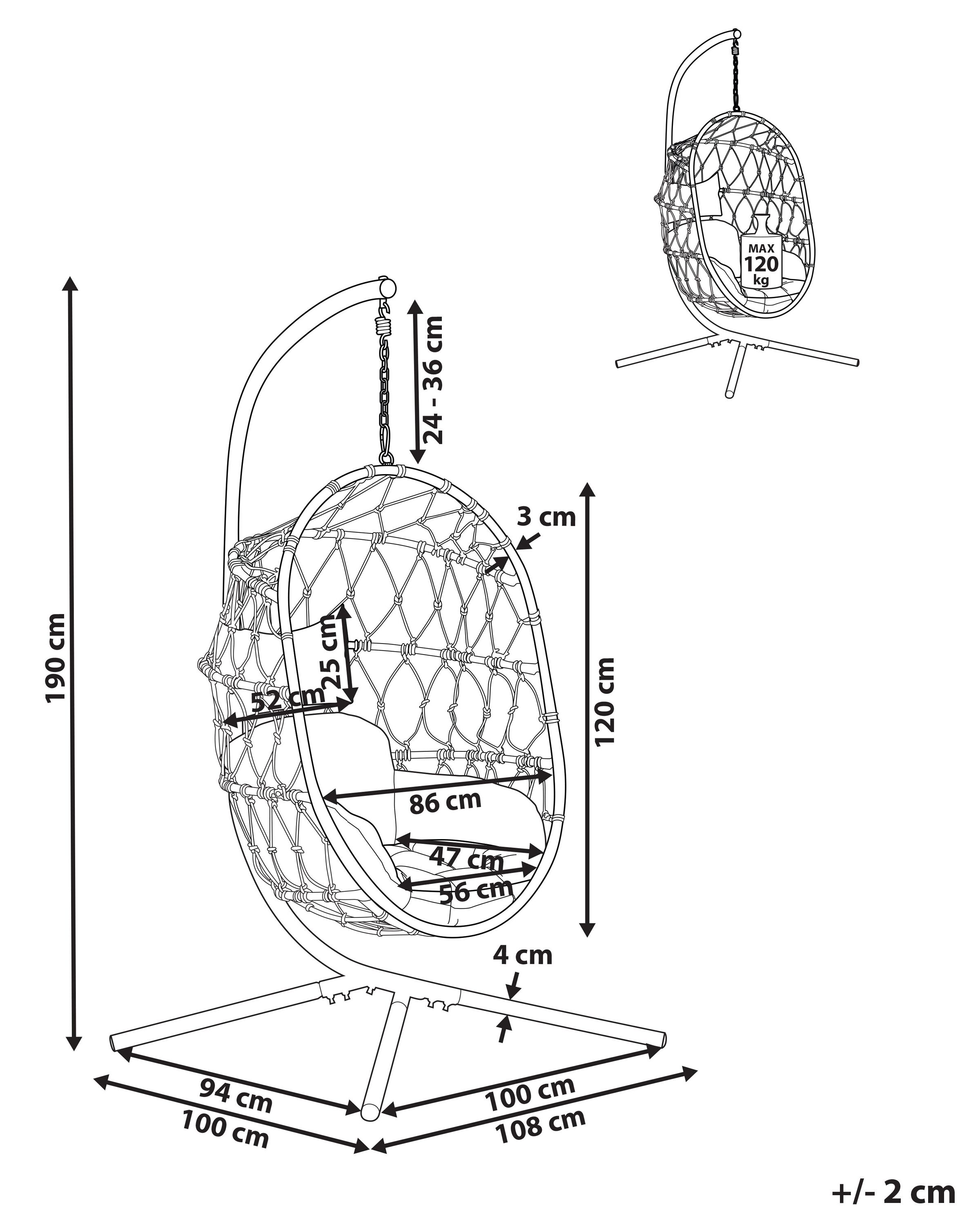 Fauteuil oeuf suspendu en métal avec coussin d'assise. Offrez-vous un endroit pour vous détendre, où vous pourrez confortablement profiter d'un nouveau livre ou d'une tasse de thé. Ce fauteuil suspendu, avec son dossier tressé et son look minimaliste, s'intègre parfaitement dans le salon ou la chambre à coucher, mais est également adapté à la terrasse ou au jardin. Le doux mouvement de balance et les coussins rembourrés vous aideront à vous relaxer après une longue journée.