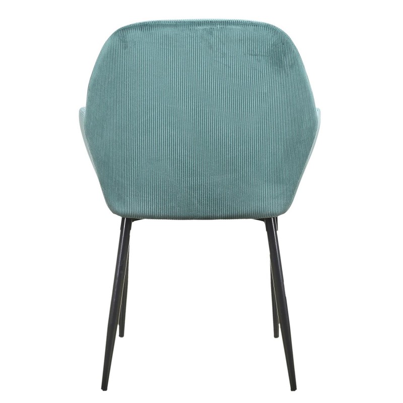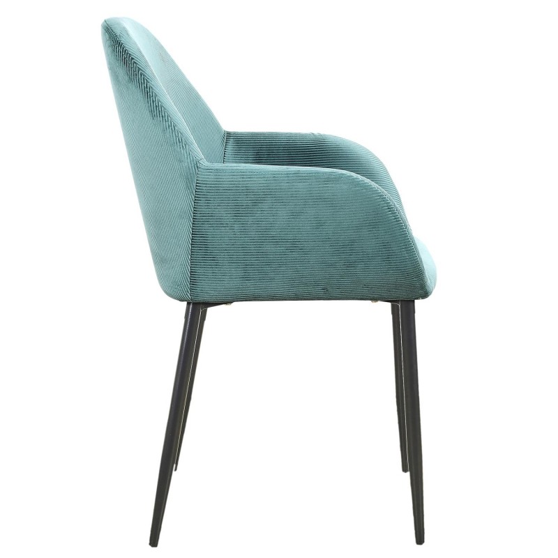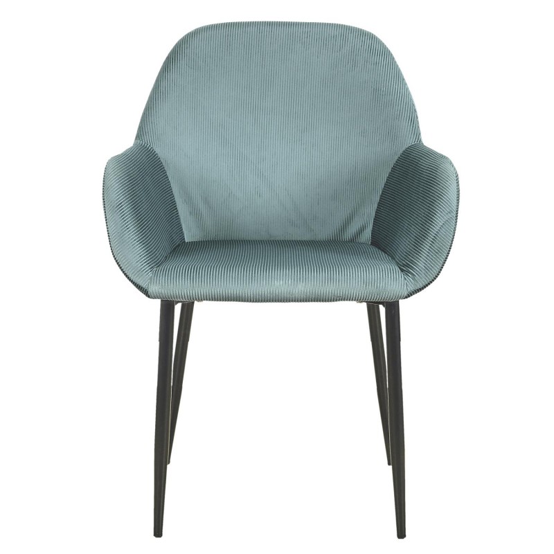 Fauteuil en velours côtelé bleu canard avec pieds métal noir. Ce fauteuil saura s'intégrer parfaitement dans votre intérieur. en y apportant une touche colorée ! A monter soi même. Dimensions : L55,7 x l59,2 x H85 cm. Hauteur assise : 45,5 cm. Matière : Mousse PU et métal. Poids : 5,9 kg.