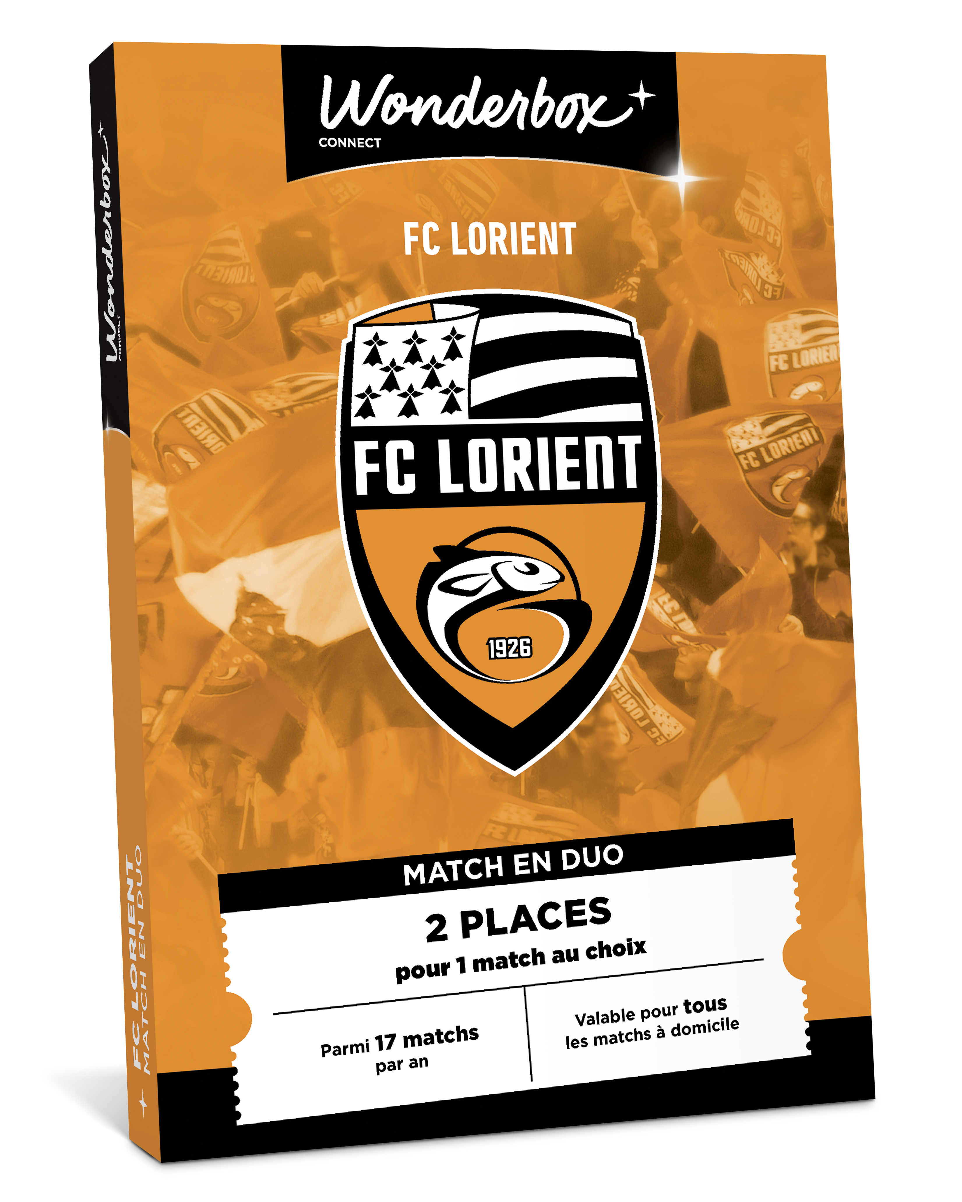 Comme chaque saison, les Merlus viennent se mêler à la lutte pour les premières places du championnat ! Adeptes de beau jeu et d’ambiance celte, rendez-vous au Moustoir ! Avec Tickn'Box, assistez au match de votre choix parmi toutes les rencontres à domicile (hors matchs de coupes) Dans votre Tickn'Box, vous découvrirez : Un chèque cadeau échangeable contre 2 places pour un même match. Ce chèque permet de réserver le match de votre choix en vous connectant sur le site tickandbox.net et d’imprimer vos places directement Le coffret est valable pour 2 places, 24 mois à compter de sa date d’achat. Tickn'Box est revendeur officiel du FC Lorient. Choisissez votre rencontre et vivez une expérience unique.