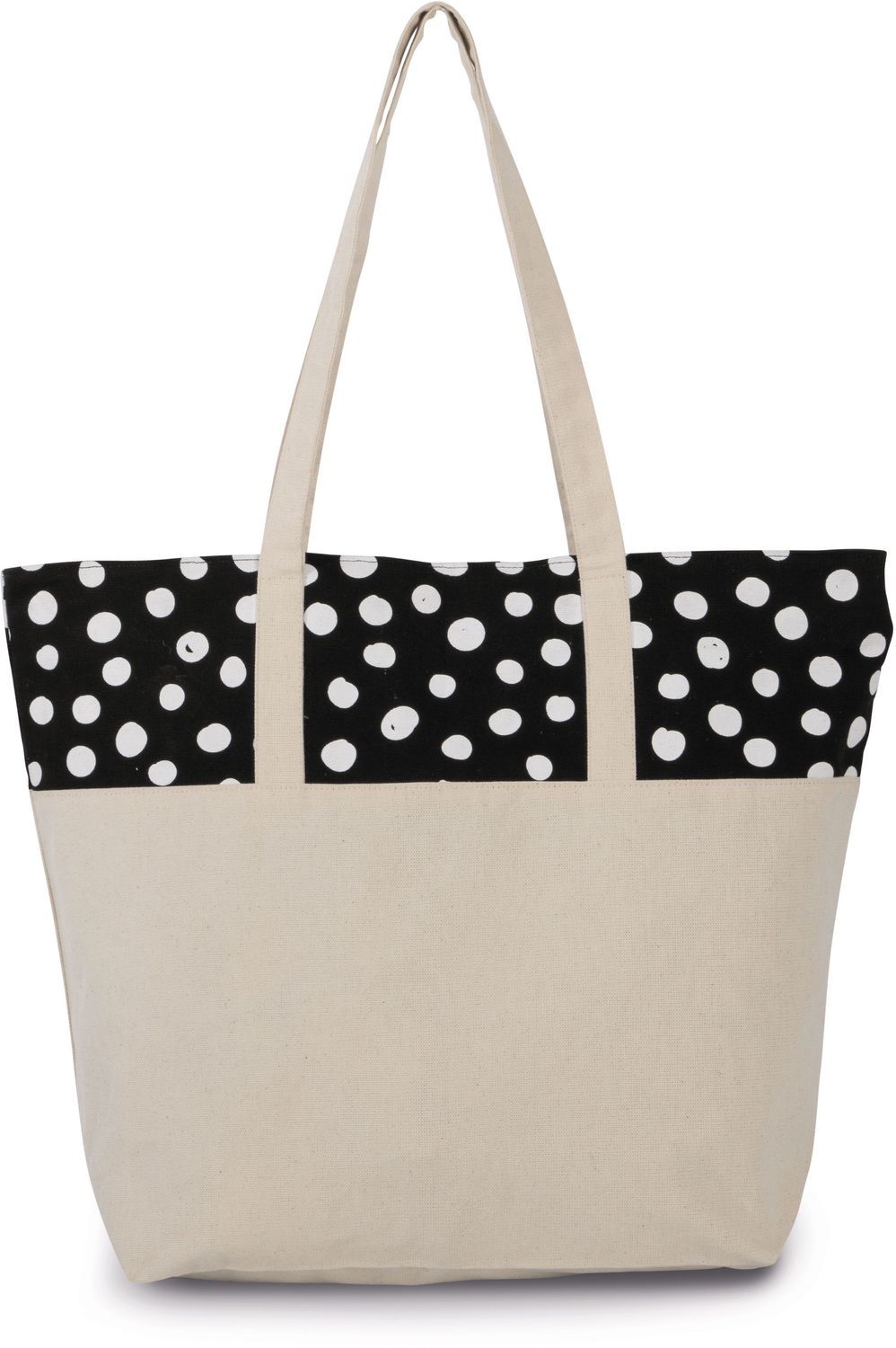 +++ FDS 080523 +++ sac shopping en coton - motifs pois - KI0286 - beige - noir - blanc