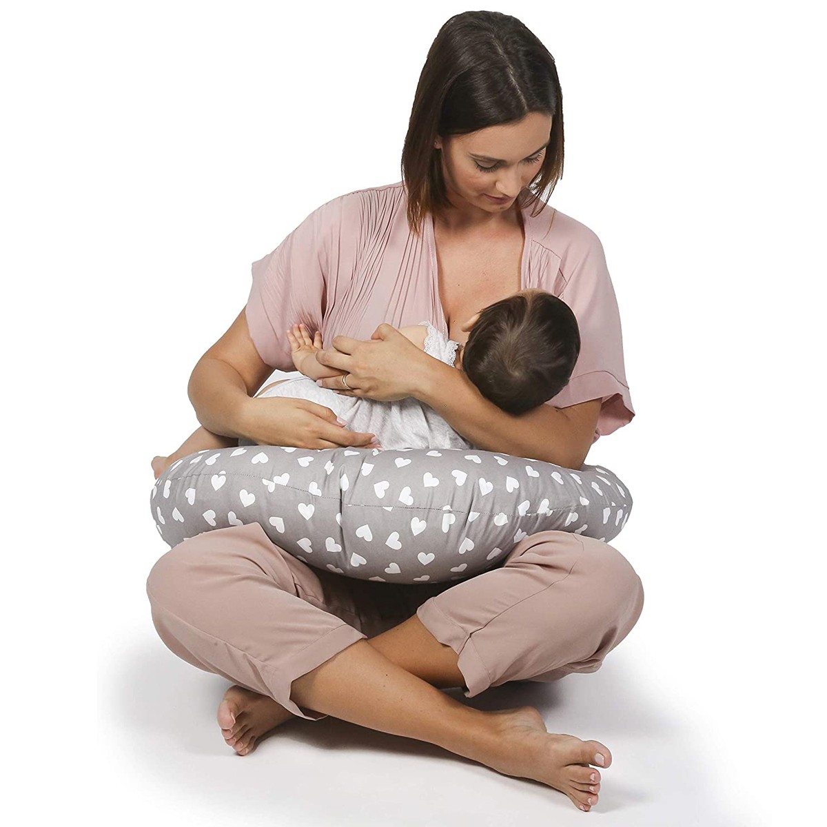 FEED Coussin d'allaitement ergonomique en coton - motifs Coeurs