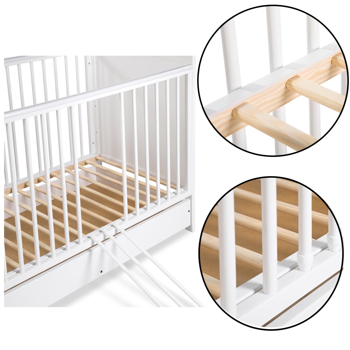 FELIX Lit bébé enfant évolutif à barreaux en bois 120X60 + tiroir Blanc