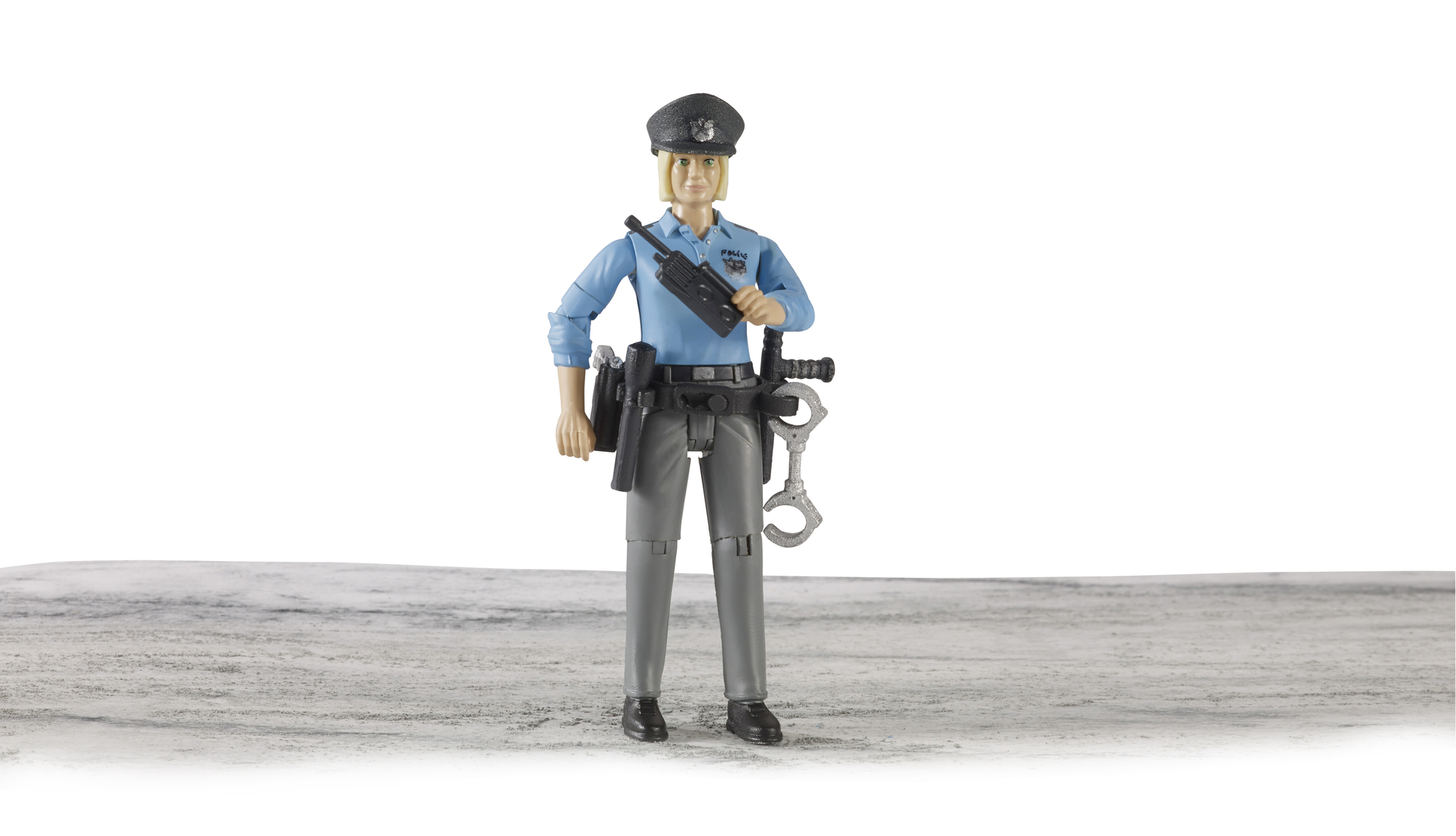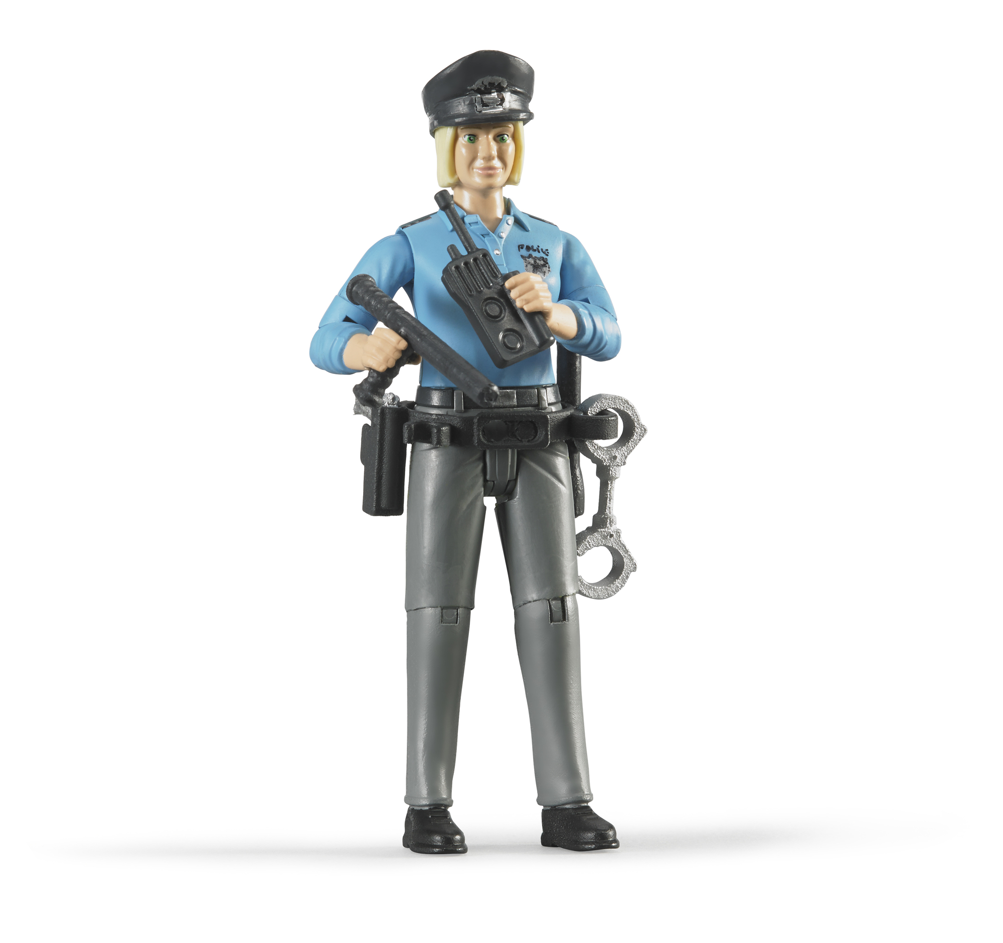 Les figurines entièrement articulées rendent le jeu encore plus amusant et réaliste, encourage les enfants à participer à des jeux de rôle nourrissant leur créativité. La policière avec son matériel est le complément idéal à tout véhicule de police qui fait partie de la gamme de produits BRUDER.