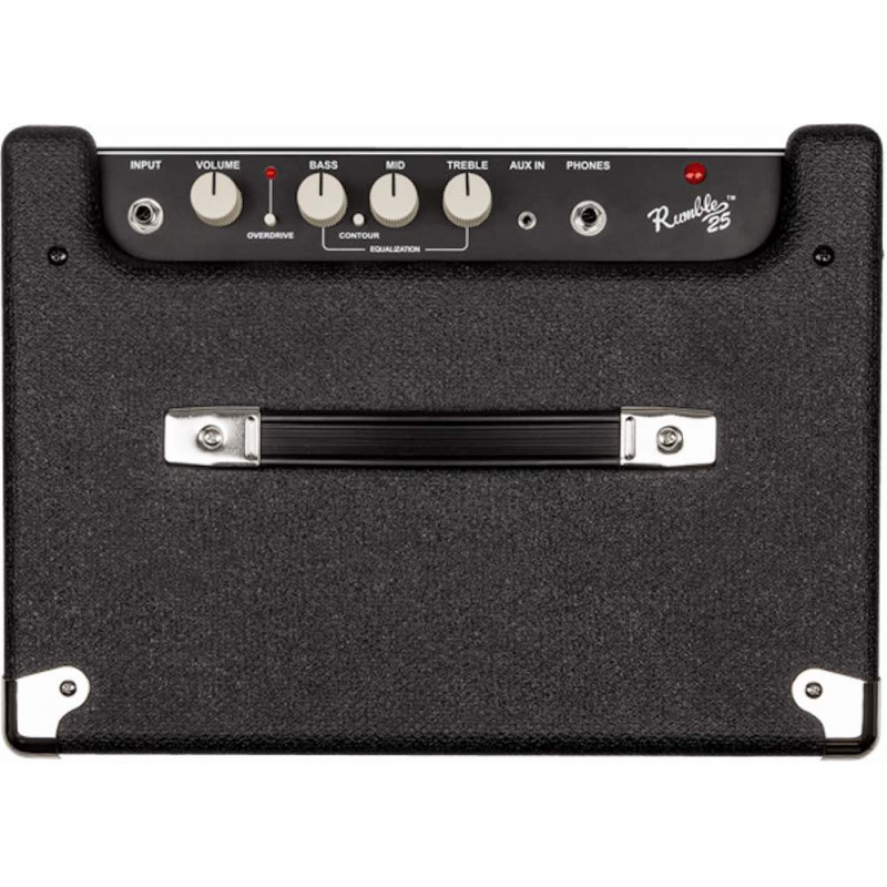 Fender a entièrement renouvelé sa fameuse série d'amplis de basse Rumble. Le Rumble 25 de Fender est la version de 25 watts. Tout comme les autres amplis de cette série, il produit un son plus puissant que son prédécesseur. Le design classique est surprenant. L'ampli est doté d'un look Blackface traditionnel, c'est-à-dire un boîtier en vinyle noir plus grand que celui de ses prédécesseurs avec un évent basse réflexe et une grille de protection argentée. Ainsi, vous êtes assuré d'une sonorité puissante et de sons graves profonds.