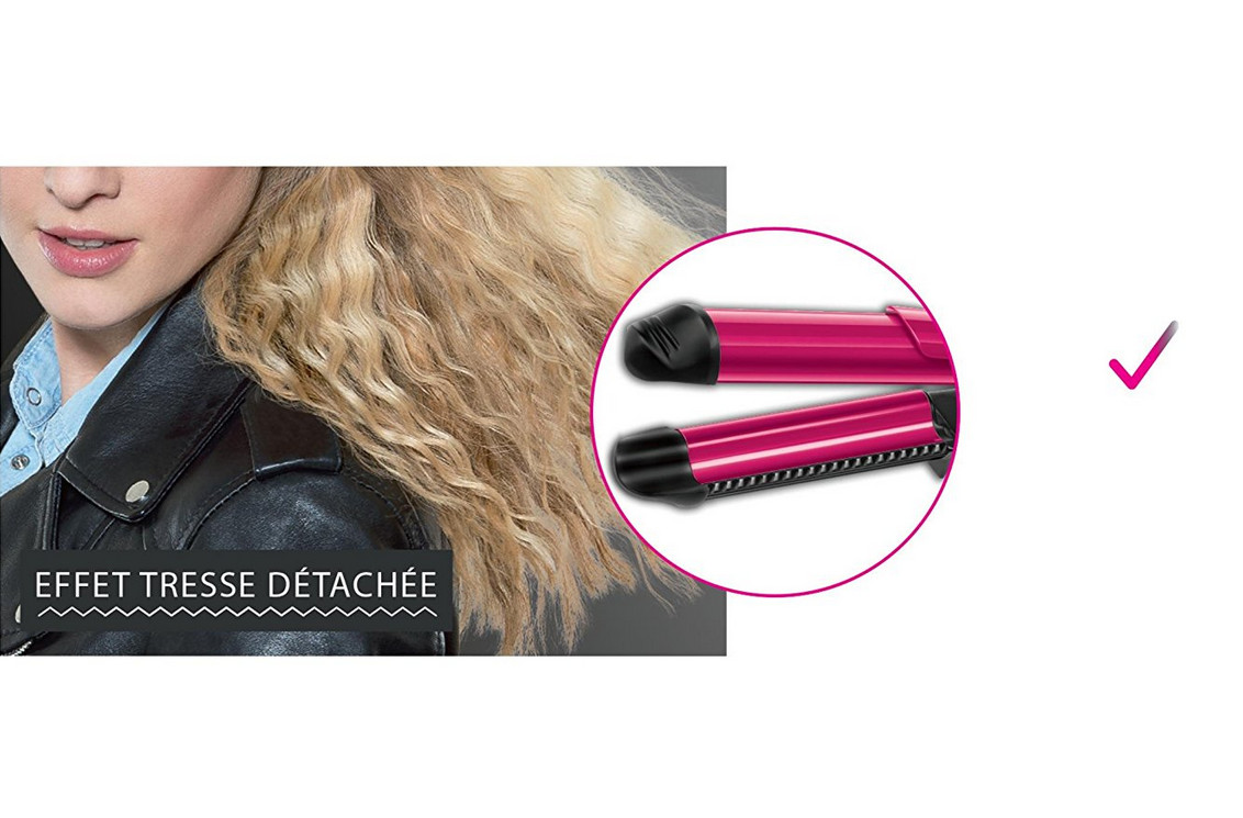 cf4522c0 - fer à coiffer 3en1 céramique 60w - Fer à coiffer 3 en 1 Calor CF4522C0. 3 fonctions combinées en 1 seul appareil pour obtenir le résultat souhaité : lissé, bouclé, tresse détachée? Créez des looks infinis et variés en un clin d'oeil !Fashion Stylist est la réponse innovante à toutes vos envies coiffure ! Vous souhaitez des cheveux lisses, bouclés ou un effet tresse détachée, cet appareil à coiffer s'adapte instantanément à toutes vos humeurs pour un look parfait et tendance. Facile à utiliser, il dispose d'un générateur ionique pour un effet anti-statique et anti-frisottis et d'un revêtement céramique pour des cheveux doux et brillants.Effet tresse détachée pour un look ultra modePlaques 3D pour réaliser un effet tresse détachée, ultra tendance.Un lissage parfait2 peignes intégrés pour un lissage efficace.Des boucles effet naturelUn large diamètre de 35 mm pour de belles boucles naturelles.Brillance et douceurL'émission d'ions réduit l'électricité statique et les frisottis pour une coiffure maîtrisée et pourdes cheveux doux et brillants.Température ajustableSes 2 niveaux de température vous permettent d'adapter le niveau de chauffe à votre type decheveux et à la coiffure désirée : 170°C et 200°C.Des cheveux brillantsLa céramique émet une douce chaleur uniforme qui s'allie à l'action des ions pour accroître labrillance du cheveu.Rangement facileSystème de verrouillage des plaques pour un rangement rapide et facile.Manipulation en toute sécuritéEmbout thermo-isolant pour plus de sécurité lors du coiffage et pour une utilisation optimale.Confort d'utilisationCordon rotatif à 360° pour une maniabilité optimale.Chauffe rapidePrêt en 45 secondes.Rangement facile et en toute sécuritéTrousse de rangement, thermorésistante, pour plus de praticité et de sécurité. - Type de Produit : Fer à coiffer.