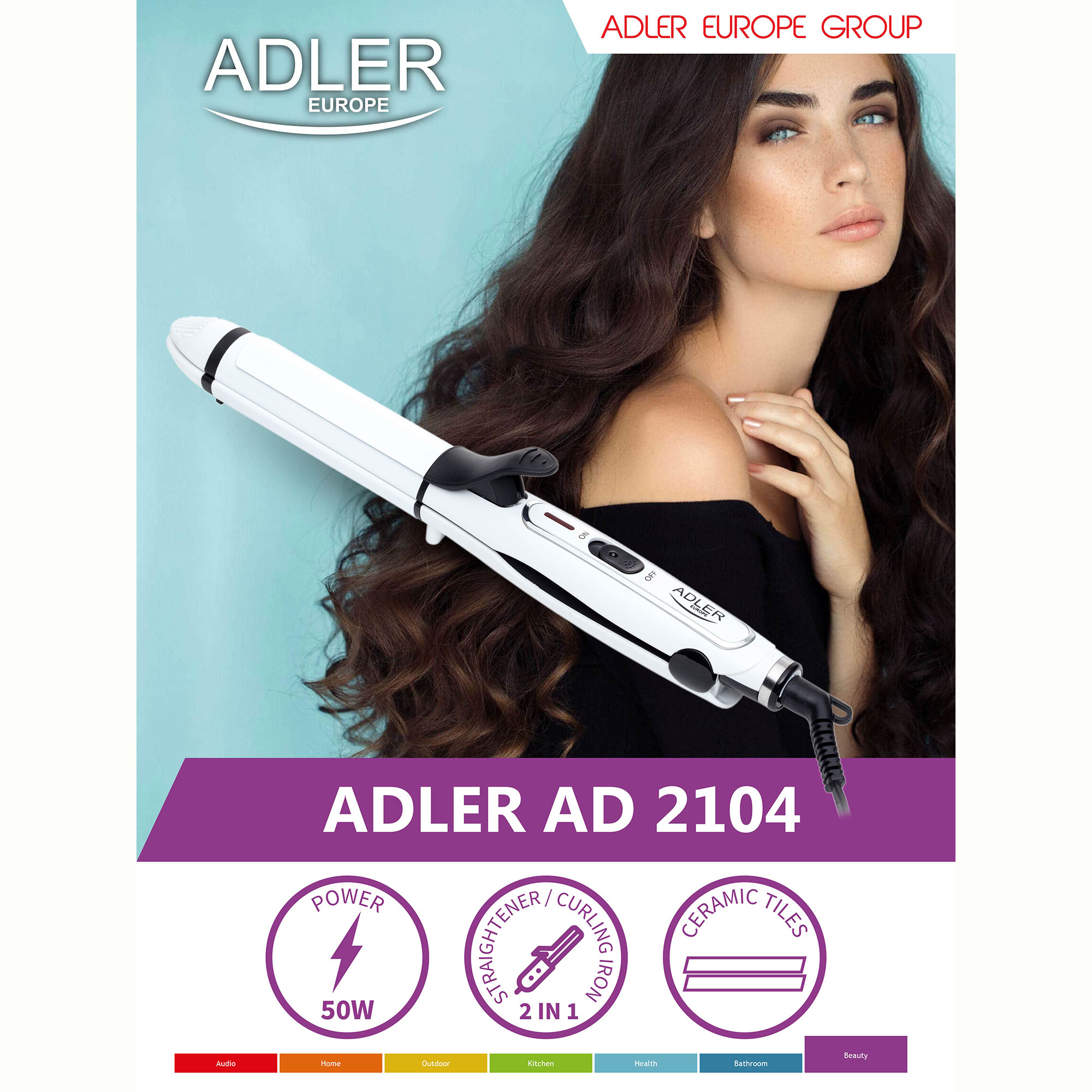 Fer à Lisser - Fer à Boucler 2 en 1, Revêtement Ceramic, Chauffage Rapide 50 Blanc AdlerAD2104