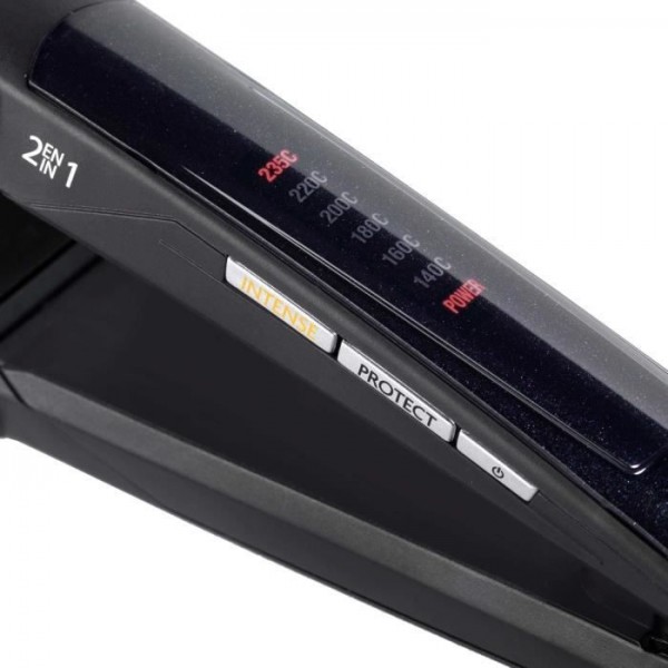 "Lisseur professionnel avec plaques en diamant-céramique pour un lissage soyeux. Réglage digital de la température140°C a 235°C. Revetement extérieur incurvé pour créer de superbes boucles. Deux modes proposés, Protect et Intense, pour correspondre a tous les types de cheveux. Peut s'utiliser sur cheveux humides."