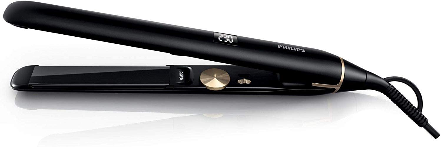 Un résulat rapide et professionnel à domicile ! Ce lisseur est équipé d'un revêtement Titane offrant une transmission inégalée pour un lissage rapide à une pression optimale. Sa technologie ionique assure un effet anti-statique et anti-frisottis pour une meilleure préservation de l'hydratation naturelle du cheveu. Ainsi vos cheveux sont mieux protégés et votre lissage de longue durée ! Performances : Pour un lissage plus rapide, ce lisseur est doté de plaques longues: 25 x 110 mm, idéales pour toutes longueurs de cheveux. Son efficacité est renforcée grâce à sa plaque flottante qui s’adapte à chaque épaisseur de mèche pour une meilleure pression. Pas besoin d'attendre avant de pouvoir l'utiliser, sa montée en température est rapide même à 230°C: prêt en 10 secondes. Cet appareil est doté d'un système de réglage numérique de la température, grâce à son écran digital et via la molette vous sélectionnez la température idéale en fonction de la nature et de la sensibilité de vos cheveux. Cordon de 2,5 mètres pour plus de flexibilité, cordon rotatif 360°. Rangez votre lisseur en toute sécurité grâce à la protection thermique conçu avec des matériaux résistant à la chaleur.