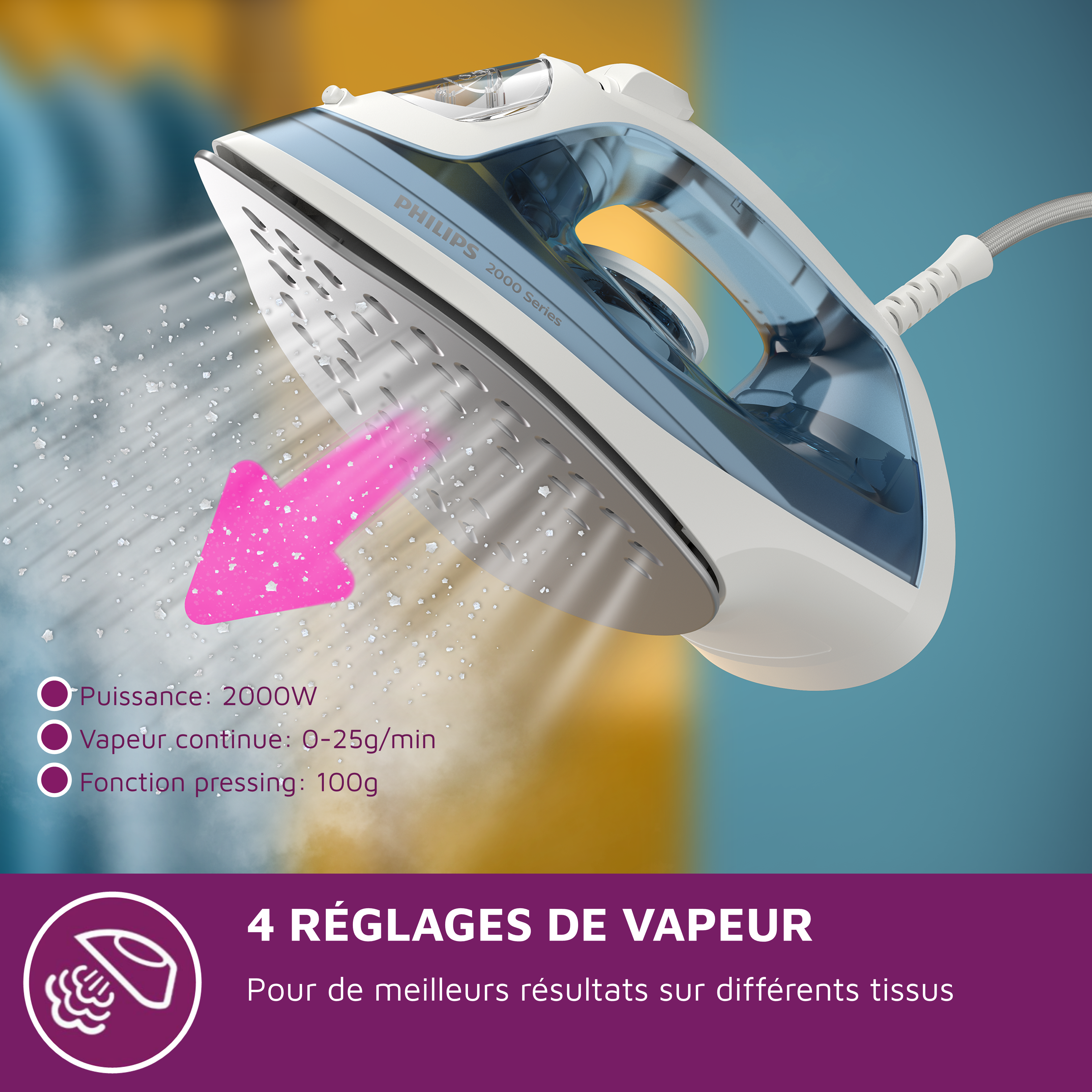 | Libellé | Fer à repasser Philips DST2010/20 fer à vapeur EasySpeed Bleu clair |