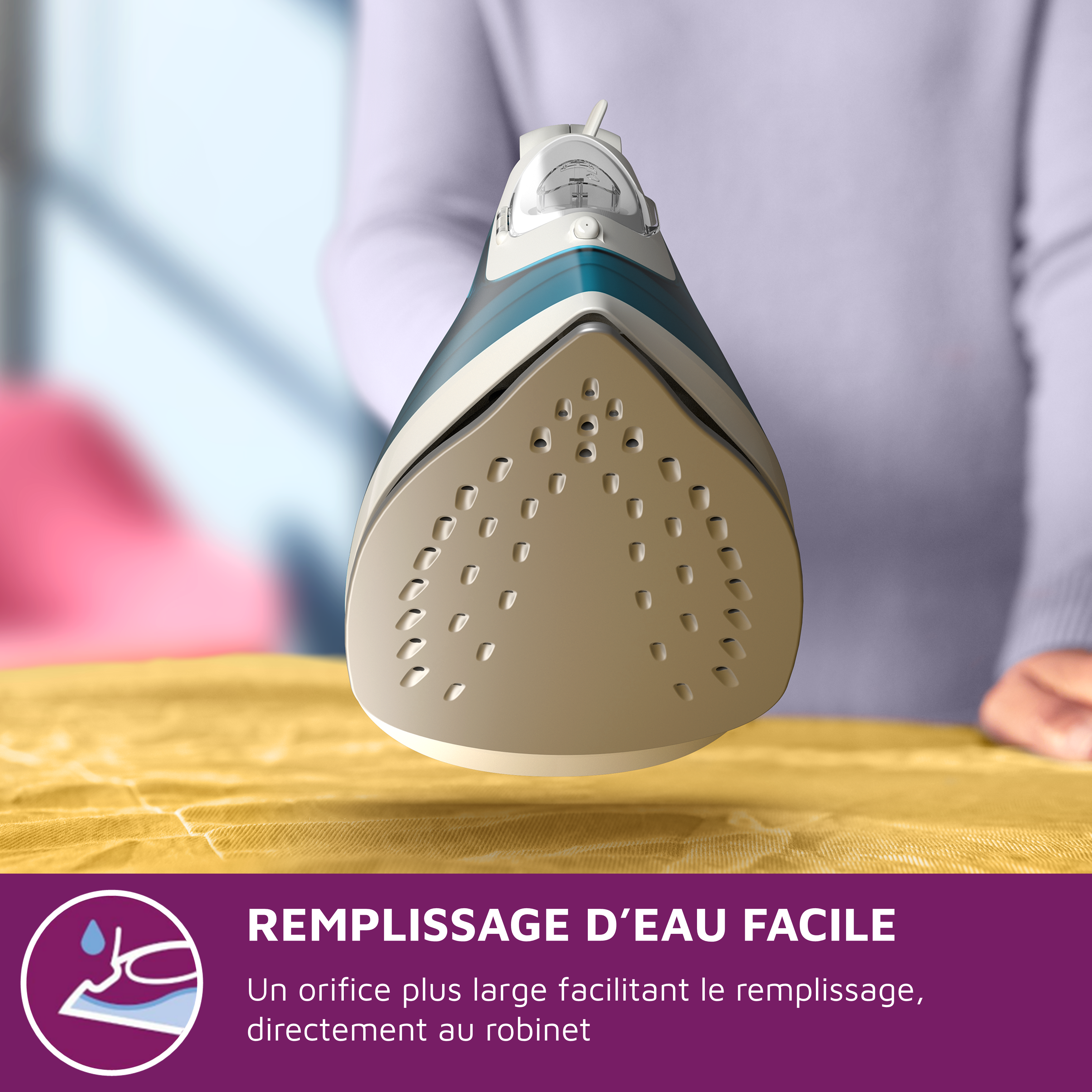 Grâce à son réservoir d'eau d'une grande capacité de 220 ml, le fer PHILIPS offre un remplissage moins fréquent afin de repasser plus de vêtements en une fois.