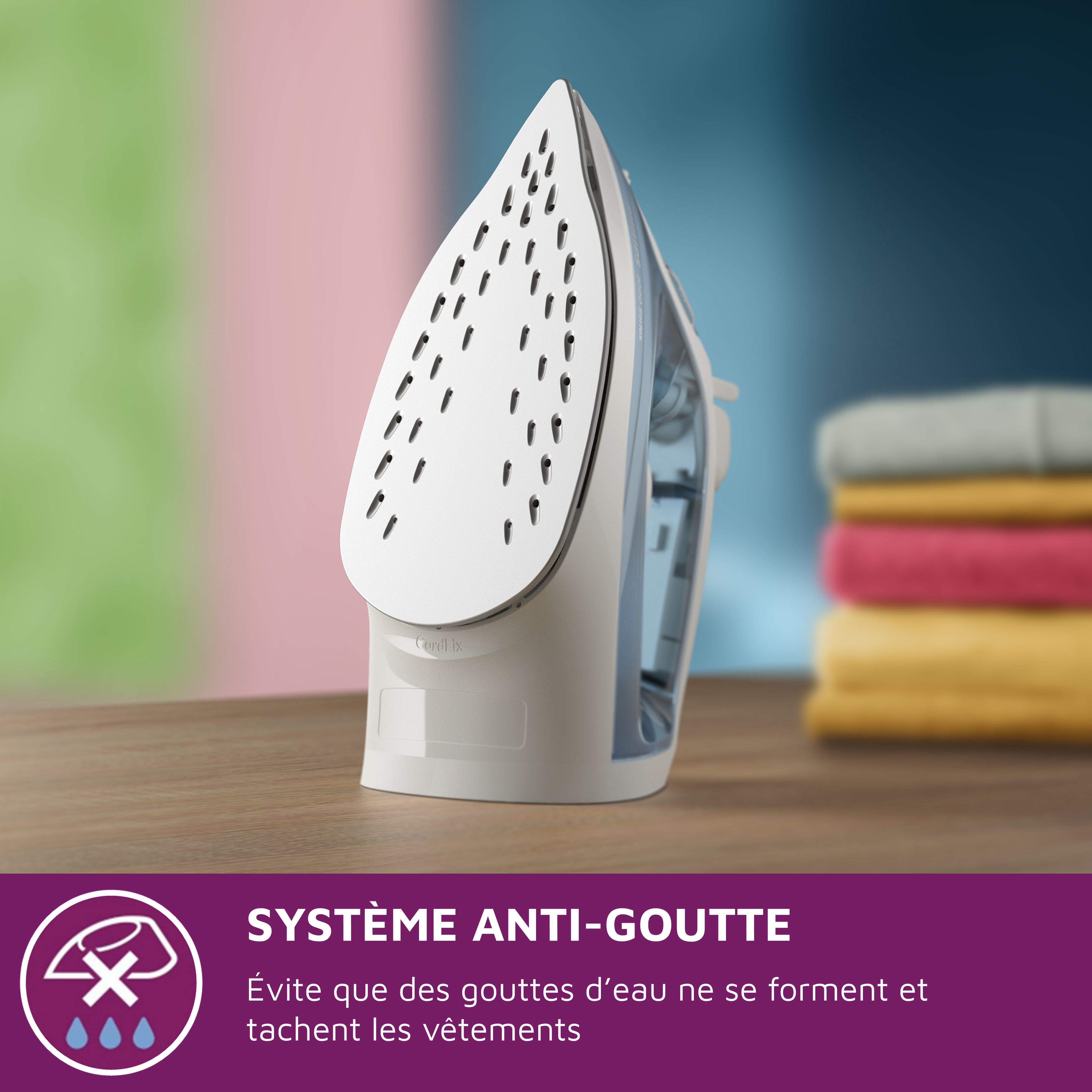 Ce fer est équipé d'une semelle antiadhésive glisse parfaitement sur tous les vêtements repassables. Le revêtement spécial du fer offre une glisse optimale pour un repassage plus rapide.