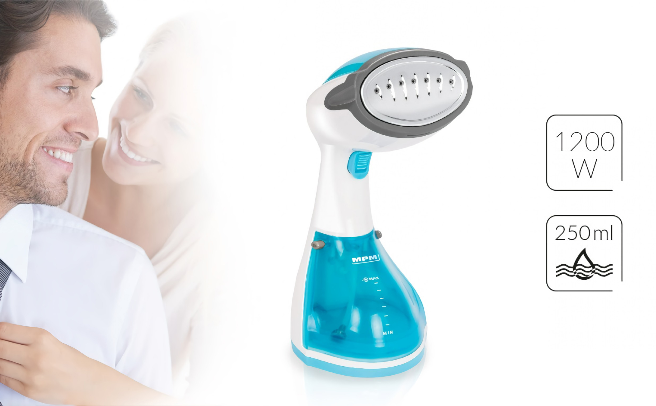 Fer à vapeur vertical pour le repassage de vêtements suspendus, rideaux, draps 1200 Blanc/Bleu MPMMZP-01