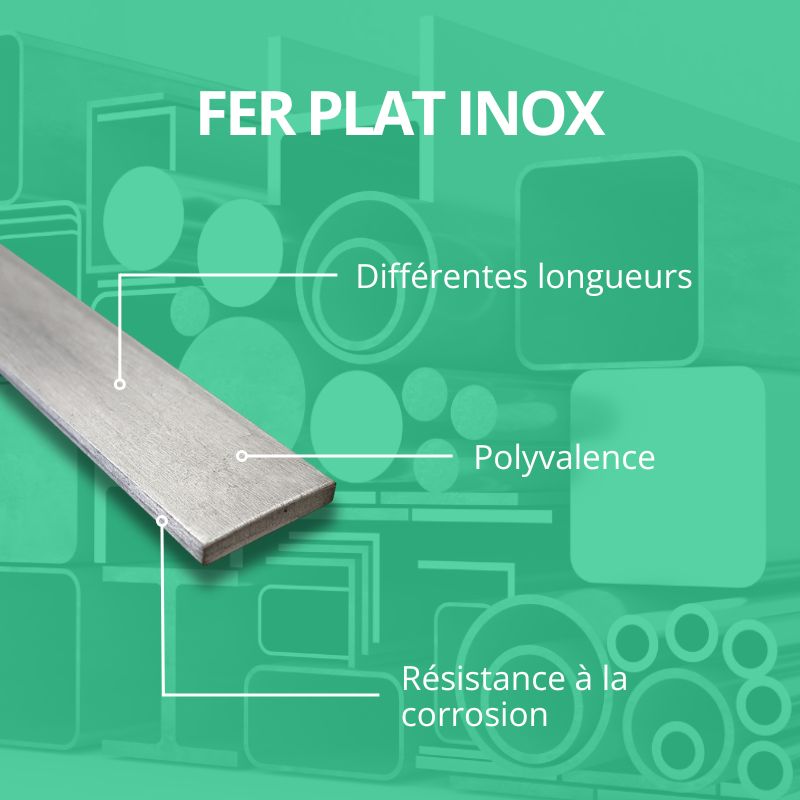 | Libellé | Fer plat inox 2 cm Longueur : 2 metres Epaisseur : 0,3 cm |