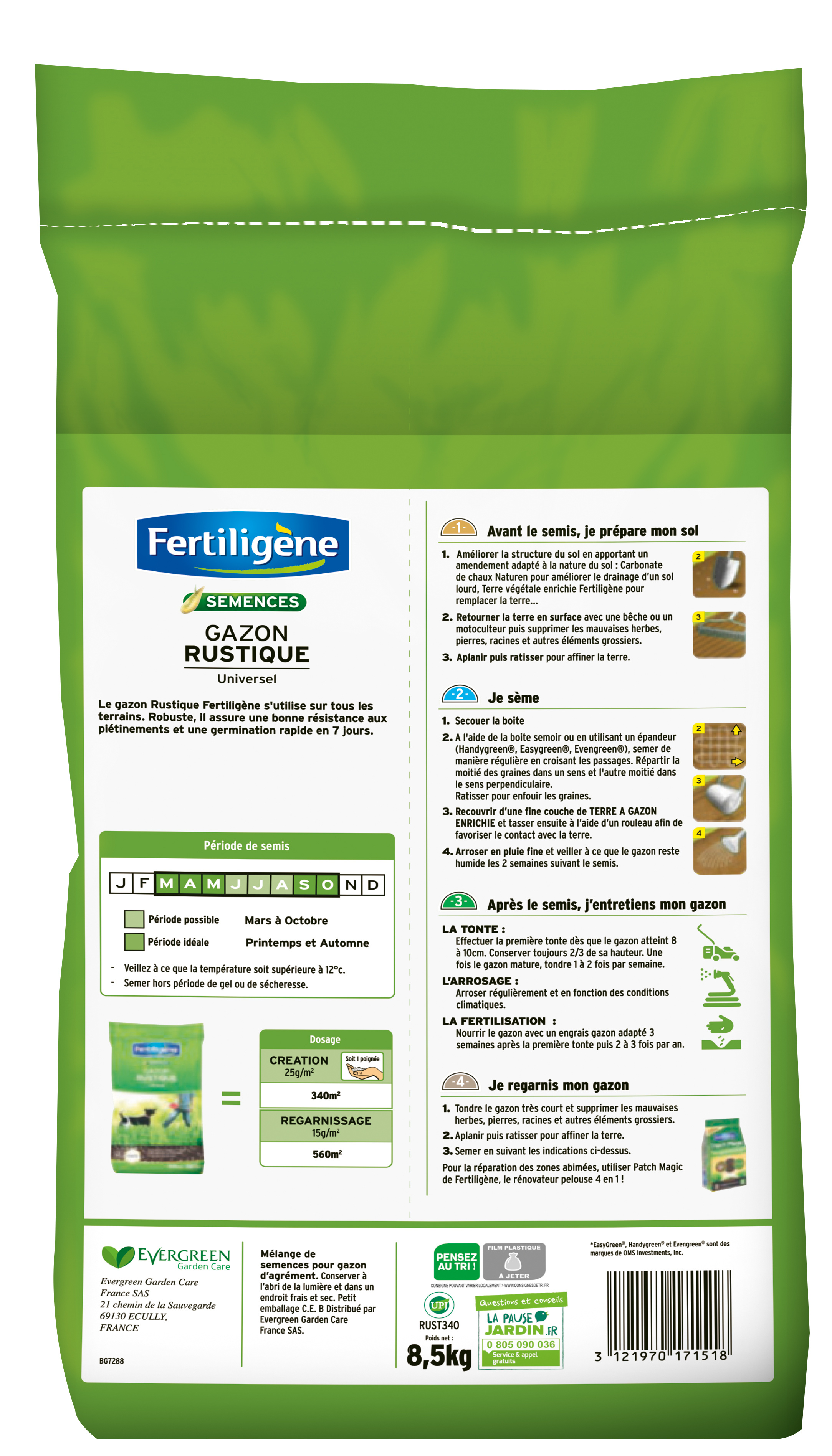 | Libellé | Fertiligène Gazon Rustique Universel 340m² pochée |