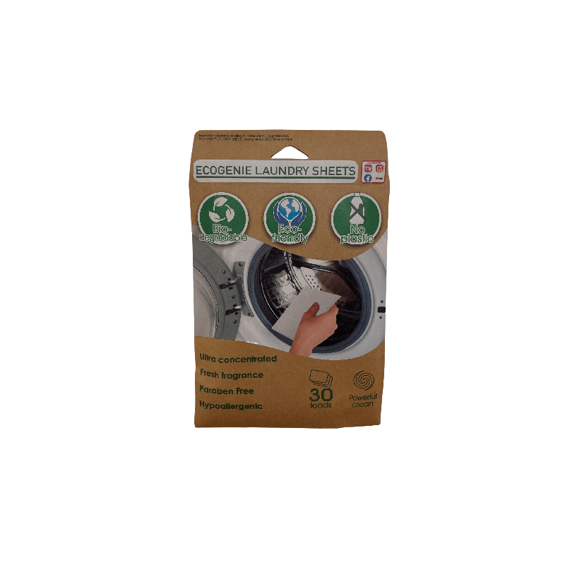 Lessive écologique et efficace : détergent à base de feuille biodégradable complétement soluble qui contribue à réduire la quantité de carbone.