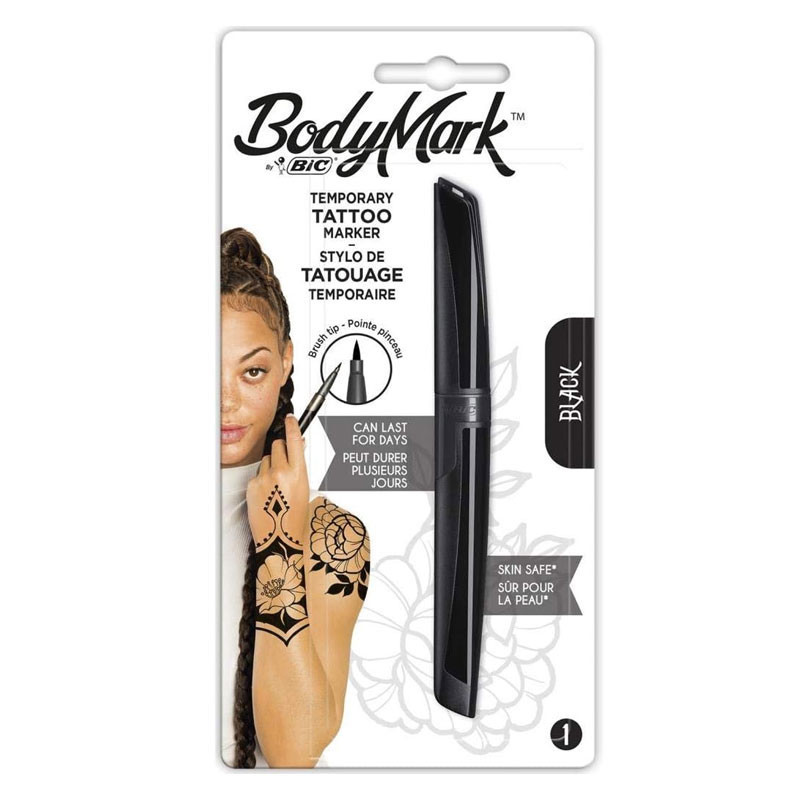 Ajoutez une touche d'art à votre peau avec le stylo de tatouage temporaire BodyMark by BIC - un outil essentiel pour les amateurs d'art corporel.