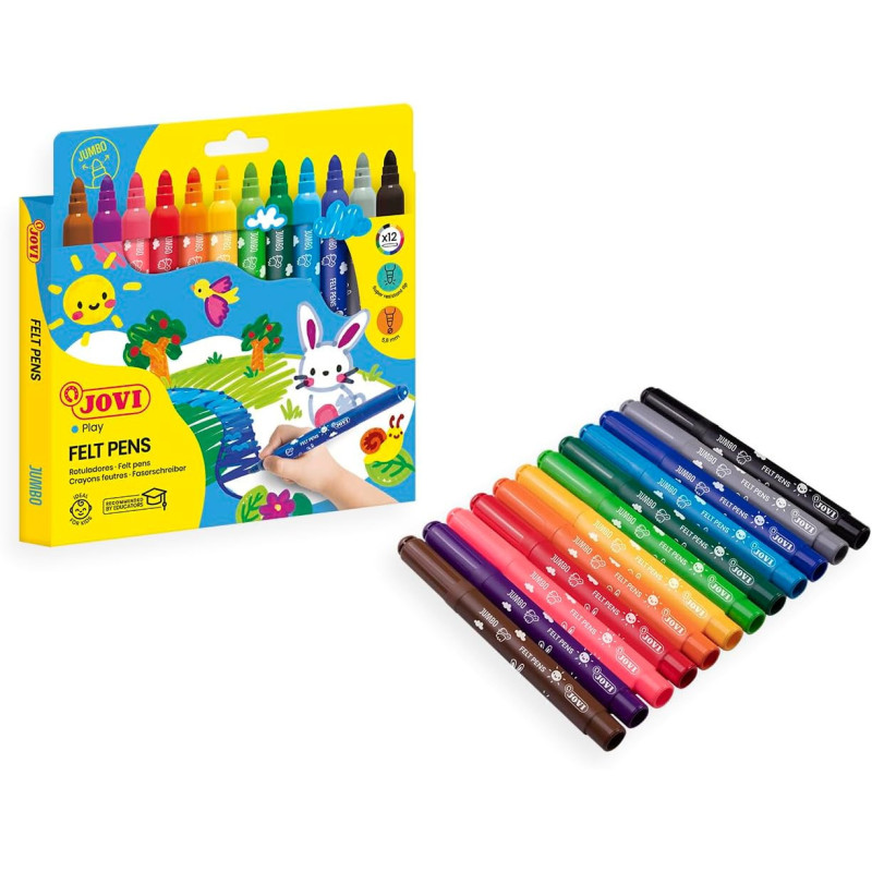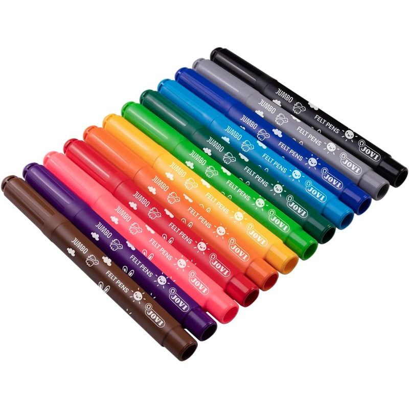 | Libellé | Feutres de coloriage - 12 couleurs - Enfant dès 3 ans - Encre lavable - Jovi |