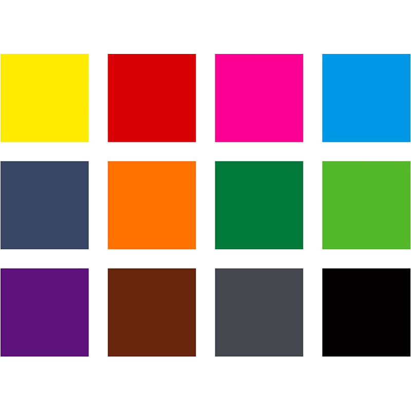 • assortis dans les couleurs : jaune, rouge, rose, violet, bleu foncé, bleu clair, orange, vert, vert clair, marron, gris, noir