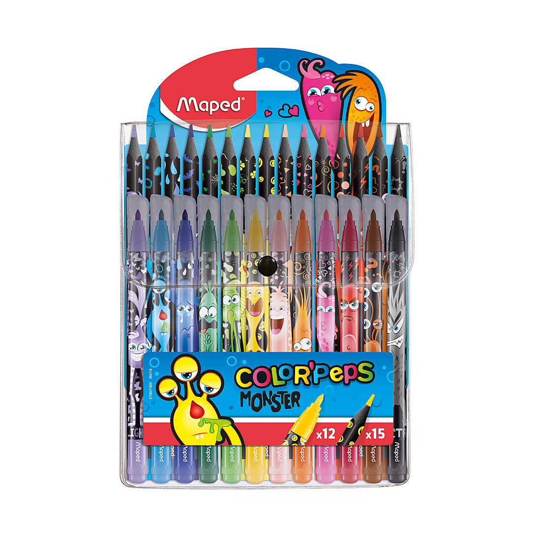 FEUTRES MONSTER X12 + CRAYONS MONSTER X15 POCHETTE