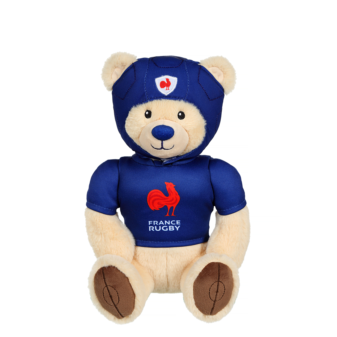 Les petits fans de Rugby seront ravis de supporter l'Équipe de France lors de la Coupe du Monde de Rugby France 2023 avec ce superbe Ours en peluche de 24 cm.