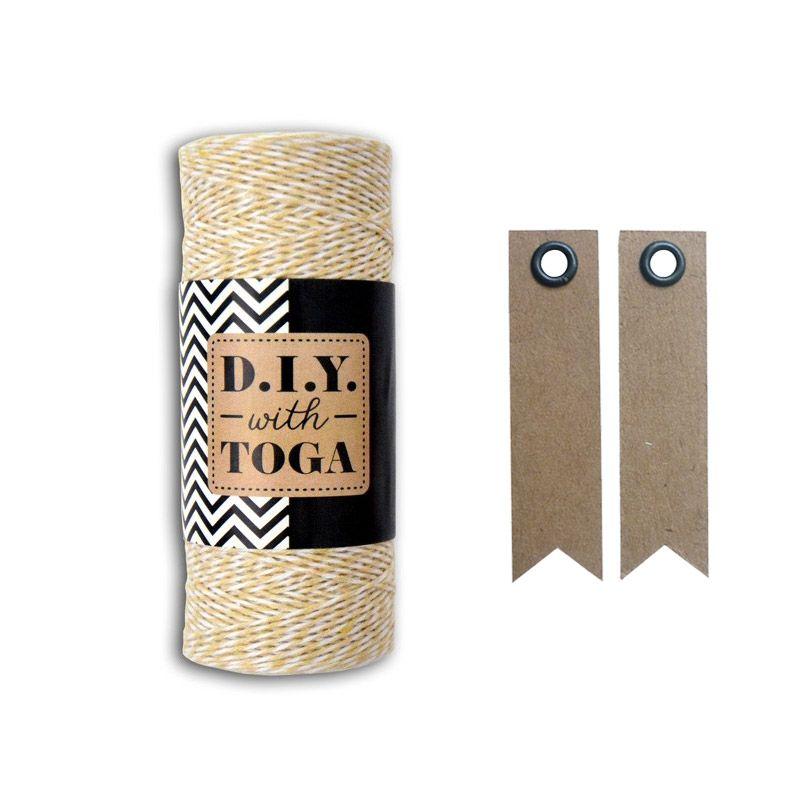 Ficelle beige & blanche 100 m + 20 étiquettes kraft Fanion
