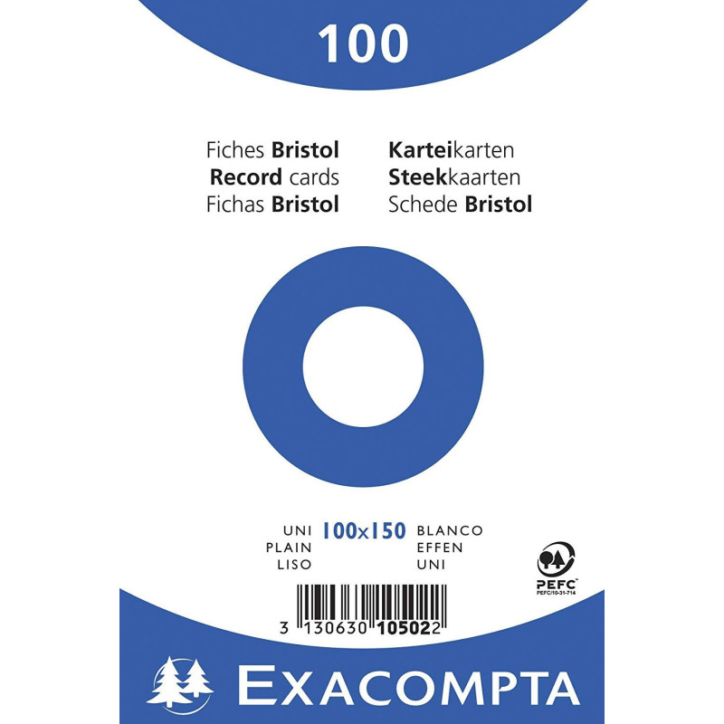 Libellé Fiches bristol - 10x15cm - Blanc - Uni - Non perforées - Lot de 100 - Papier épais - Exacompta
