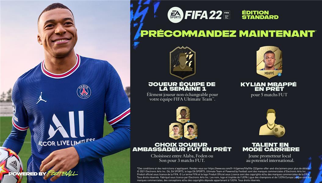 Powered by Football(TM), EA SPORTS(TM) FIFA 22 dynamise encore plus le jeu grâce à la technologie HyperMotion qui sublime chaque action sur le terrain. La technologie HyperMotion intègre des données de capture de mouvements collectifs et est dotée d'une intelligence évolutive qui dynamise chaque match de FIFA 22. Grâce à la puissance des consoles de nouvelle génération, la jouabilité devient encore plus réaliste, plus réactive et plus fluide que jamais. FIFA 22 vous propose des innovations dans tous les modes de jeu. JOUABILITÉ TECHNOLOGIE HYPERMOTION Grande nouveauté d'EA SPORTS FIFA et des consoles de nouvelle génération, HyperMotion allie pour la toute première fois deux technologies afin de révolutionner la jouabilité : Capture 11-11 Avancée: Les combinaisons Xsens permettent, pour la première fois, de capturer les mouvements de 22 footballeurs professionnels en plein effort. Le jeu de tête gagne ainsi en efficacité et l'issue des duels est plus nette. Les possibilités sont infinies.